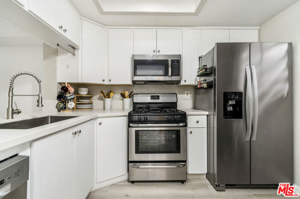 Welcome to this amazing Turn Key, two-story condo in the highly desirable Arts District of North Hollywood. This beautiful home offers the perfect layout, with two primary bedrooms, 2.5 bathrooms in approximately 930 sq/ft with side by side parking in the gated garage. The first floor features a guest powder room, spacious family room with recessed lighting, and a fireplace to convene and relax at the end of the day. The large sliding glass doors lead to the balcony that provides additional entertaining space. The dining area is perfectly situated to the lovely kitchen with Quartz Countertops and Stainless Appliances. Upstairs, you'll find two spacious en-suite bedrooms with high ceilings and two custom built-in linen closets in the hallway. The primary bedroom has extensive closet space with mirrored sliding closet doors that open to amazing built-in shelving to the organizers delight. The recently updated bathroom features stunning tile work and newer fixtures. The second bedroom is filled with natural light, has a balcony for relaxing, a large mirrored closet which also boasts newer built-ins and a beautiful updated bathroom. Additional updates include luxury vinyl flooring throughout, newer dishwasher, and newer microwave. There is also an additional spacious storage room located near the gated parking area. This lovely private community has so much to offer with its gated access and walking distance to the world famous NoHo Arts District, delicious restaurants, excellent shopping, fabulous park with running trail, workout studios, Toluca Lake Adjacent, and close proximity to the 101 freeway with easy access to, and around Los Angeles. Pack the toothbrush and book the movers, this home is waiting for you!