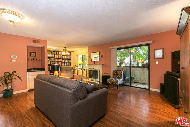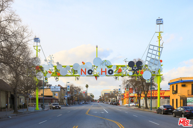 If location, life style, an open floor plan with 2 balconies, a small complex with low HOA dues, and a front unit with tree top views are on your wish list, this home will be a perfect fit for you! You enter into a living room with hardwood floors, double glass sliding doors leading to a cozy patio with neighborhood views, and a gas fireplace that is shared with the dinning area. The kitchen is light filled with more neighborhood views. A 1/2 bath at the base of a gentle stair case takes you to the second floor. A large master suite with cathedral ceiling and sliding glass doors that open to the second patio. Good size second bedroom, a full bath and laundry closet makes this home very desirable. Other features are 2 subterranean side by side parking spaces with additional storage, newer roof and HVAC system, NoHo Arts District, walking score of 89, shops and restaurants, minutes to Universal Studios.