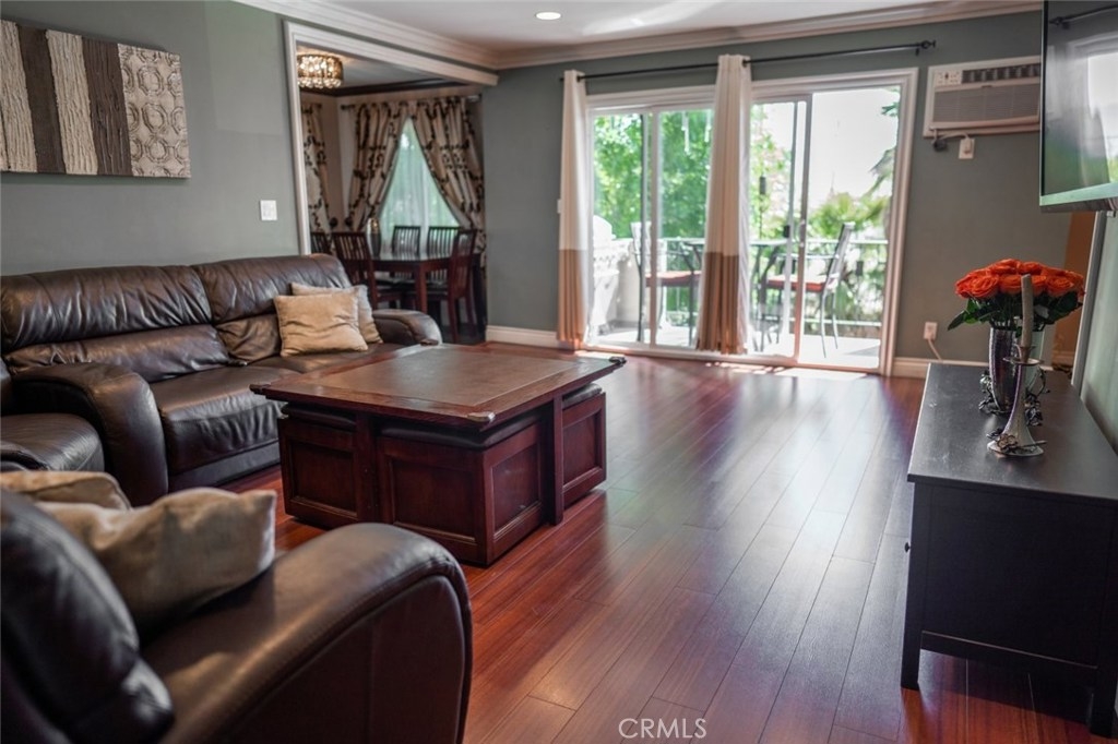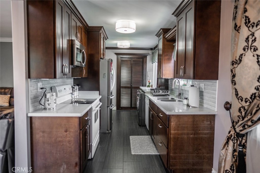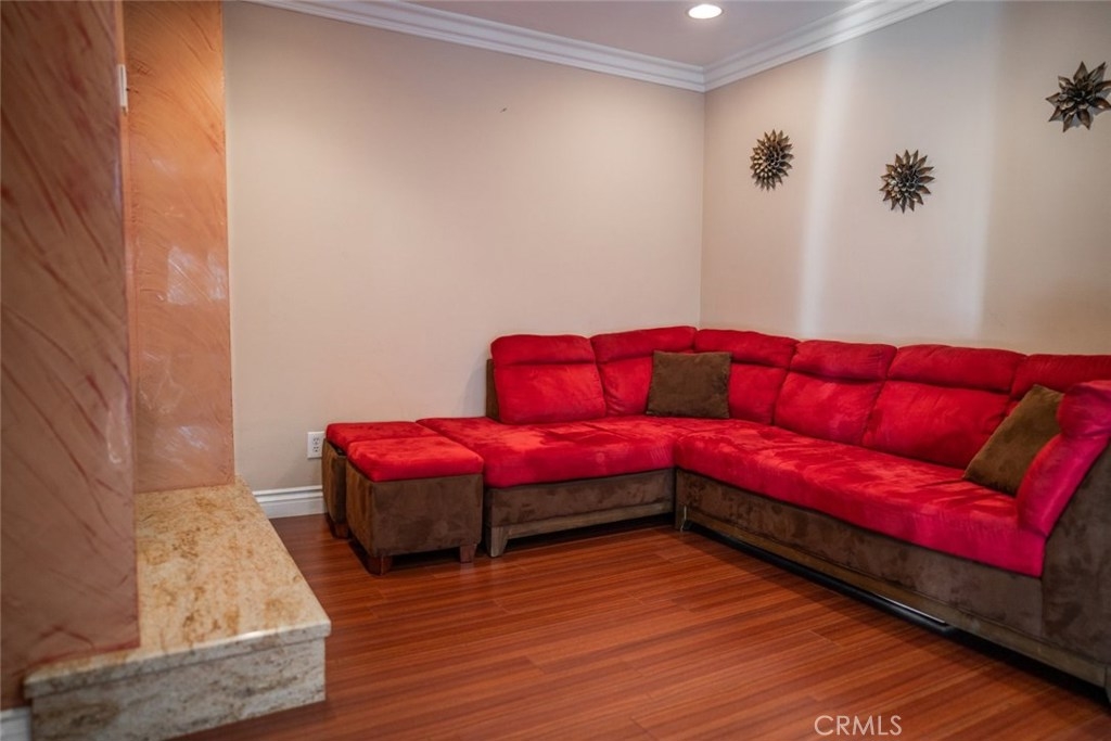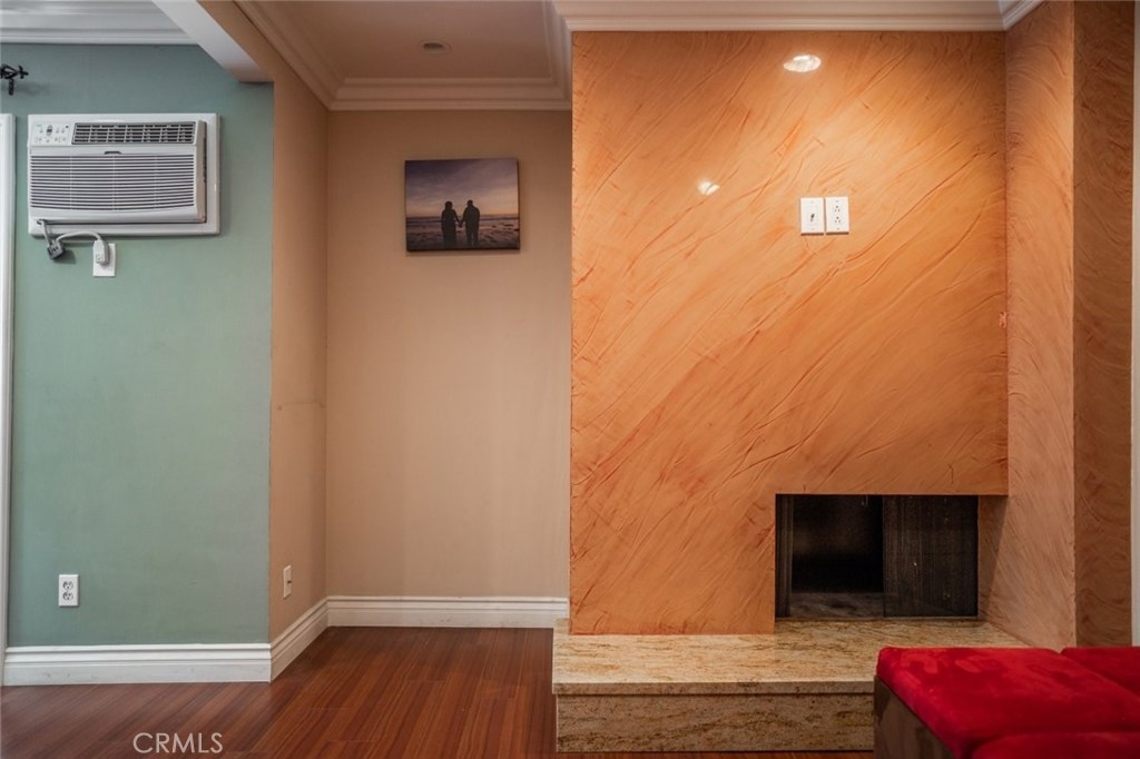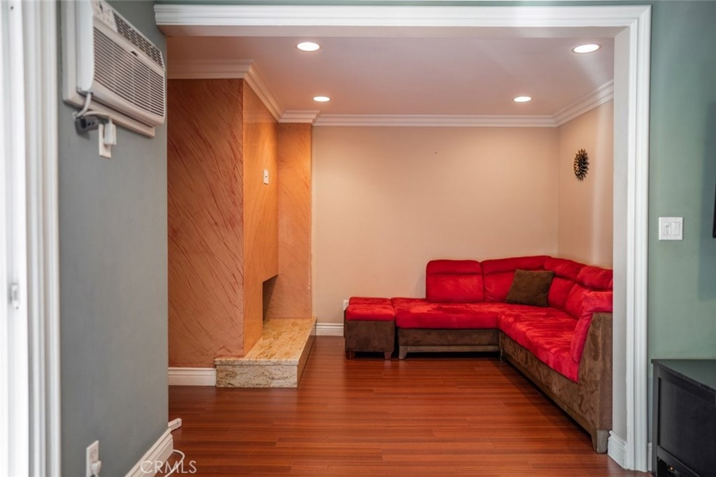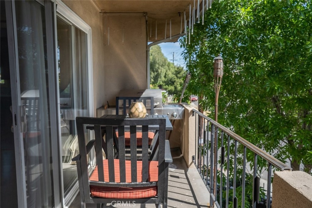 Nestled in North Hollywood is a charming unit featuring 2 bedrooms, 2 bathrooms and 1,195-SQFT of living space. Throughout the unit find impressive laminate and tile flooring, baseboard moldings and smooth ceilings equipped with recessed lighting. The unique floor-plan provides a nice sized living room with an additional bonus area/den that has a cozy fireplace. Sliding glass doors in the living room help pave your way out to a private patio with a tree top view. Stunning Galley kitchen with dark wooden cabinetry, sleek smooth counter-tops, glass tile mosaic back-splash and built-in appliances. Bathrooms are beautifully designed with granite counter-tops. Bedrooms are well-illuminated with natural light offering ample closet space. Not only is this unit located in a well-kept secured building, and centrally located just minutes away from Ralphs, Bank of America and the Valley Plaza, movie theaters and much more.