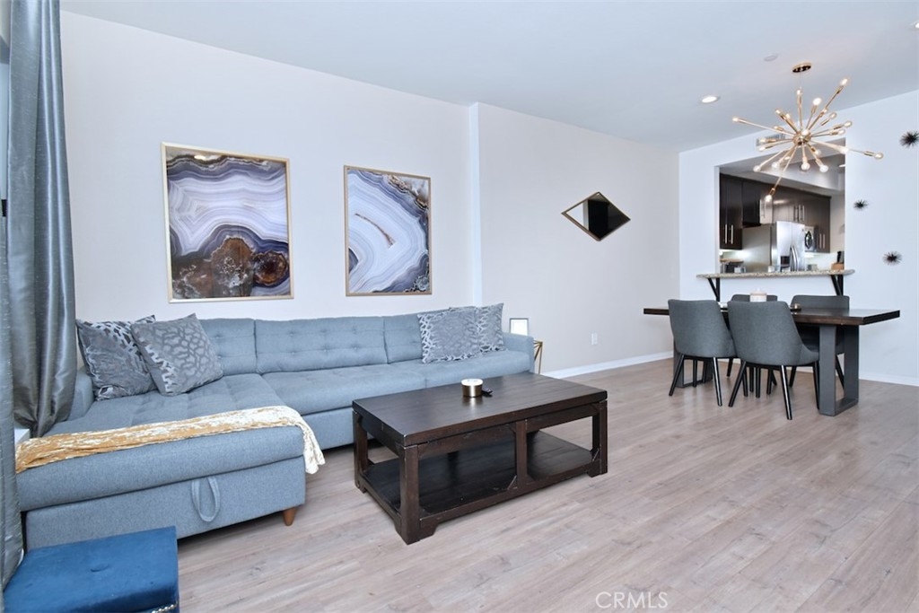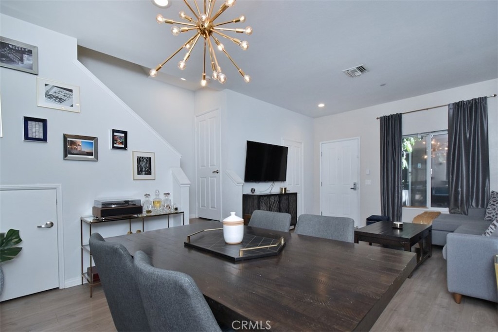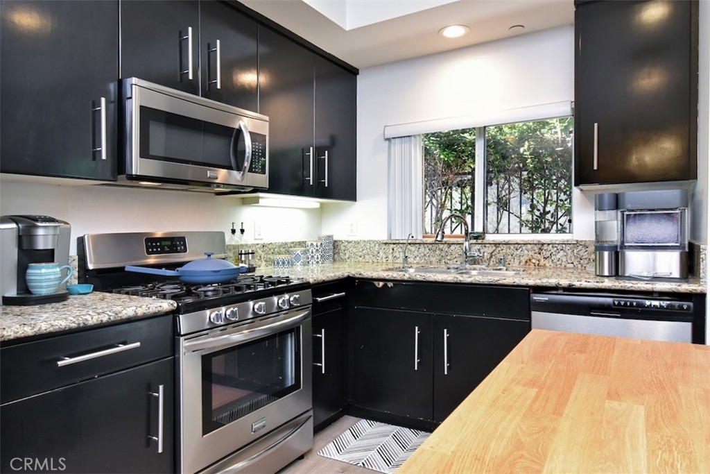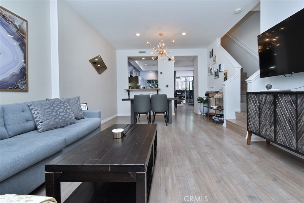 Nestled in the vibrant NoHo Arts District, this updated townhouse boasts a prime location within a gated community. Spanning 1,640 square feet, the residence features three bedrooms and three-and-a-half bathrooms. Upon entering, you'll notice the stylish interior with an open floor plan that effortlessly connects the spacious living area to the well-appointed kitchen. Equipped with granite countertops, stainless steel appliances and a reverse osmosis filtration system, the kitchen opens to the dining area, features a breakfast bar and sliding glass doors that open to the outside patio. Two sunny bedrooms with recessed lighting and two bathrooms, one ensuite, are conveniently located on the second floor. The private and expansive primary suite on the third level offers dimmable lighting, a custom walk-in closet, luxurious ensuite bathroom with dual vanities, natural stone counters, a glass-enclosed shower, and a separate spa tub with jets and a large sunny balcony. Additional amenities include a washer and dryer with steam refresh function, a newer tankless water heater and HVAC unit, two tandem parking spots, a shared storage room, along with guest parking in the garage. The convenient proximity to nearby shops, restaurants, entertainment, freeways and public transportation make this a fantastic place to call home! Toluca Lake Elementary School District!