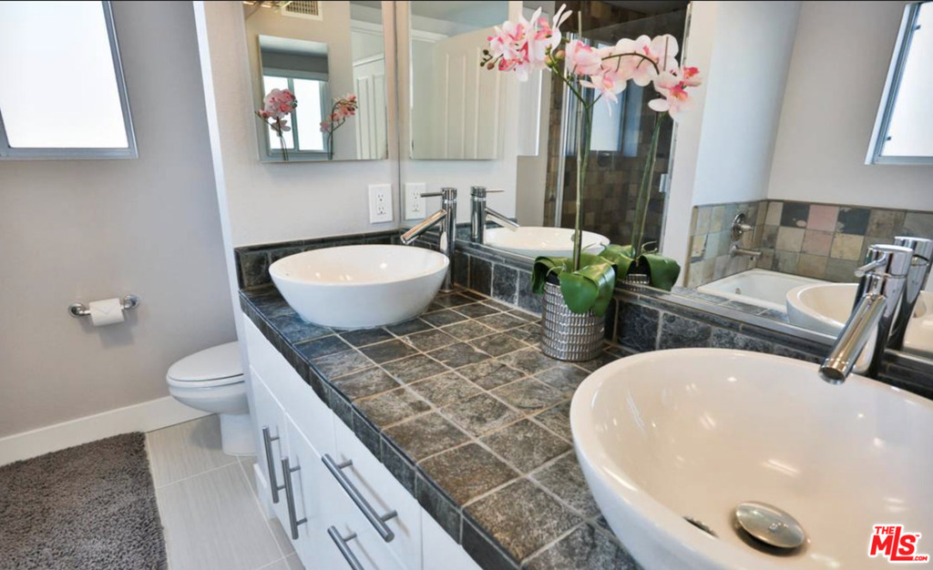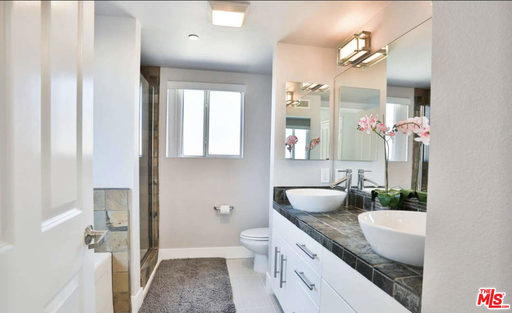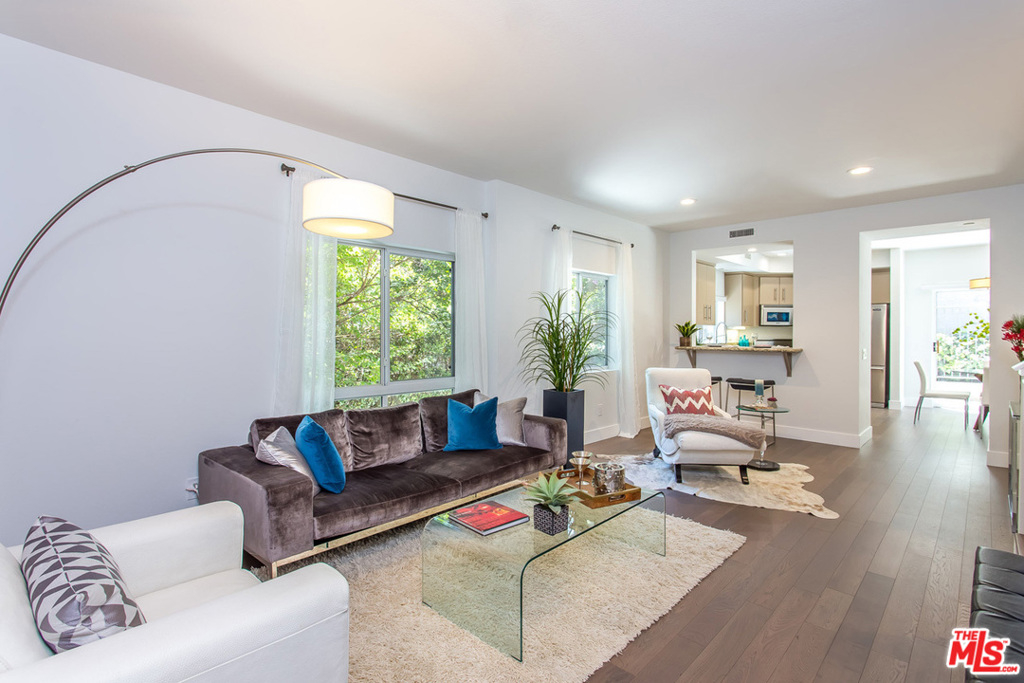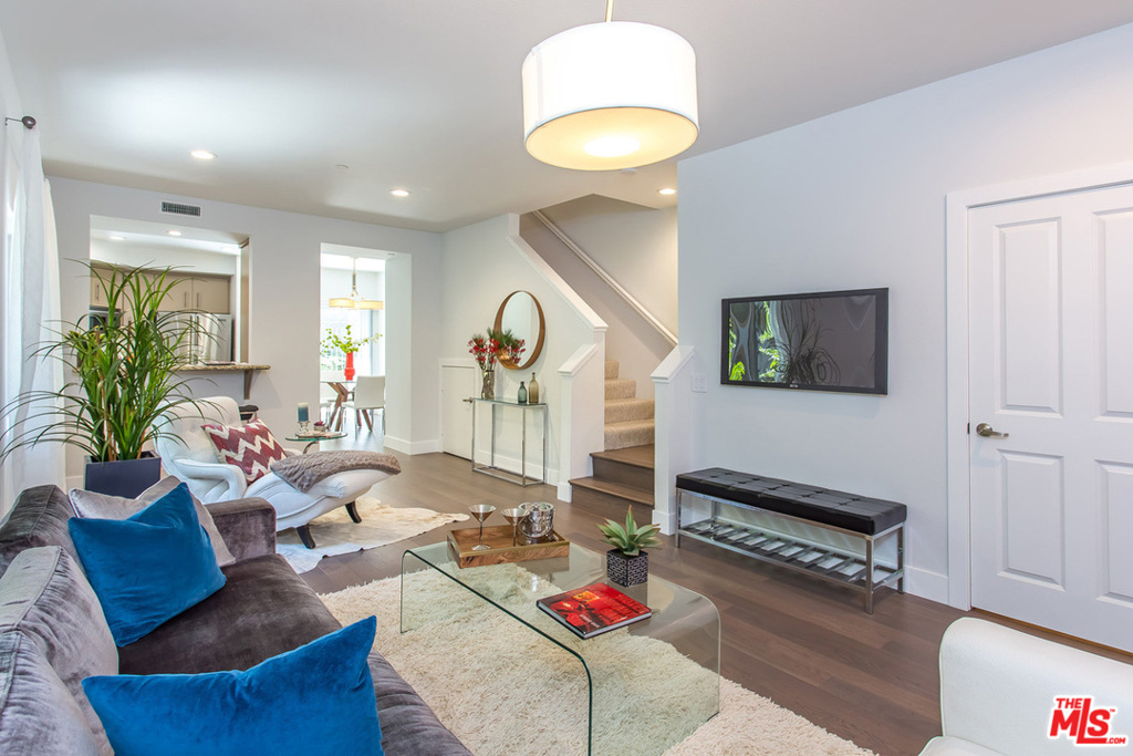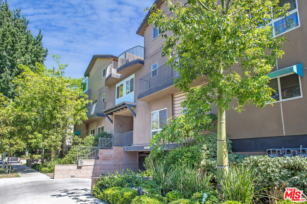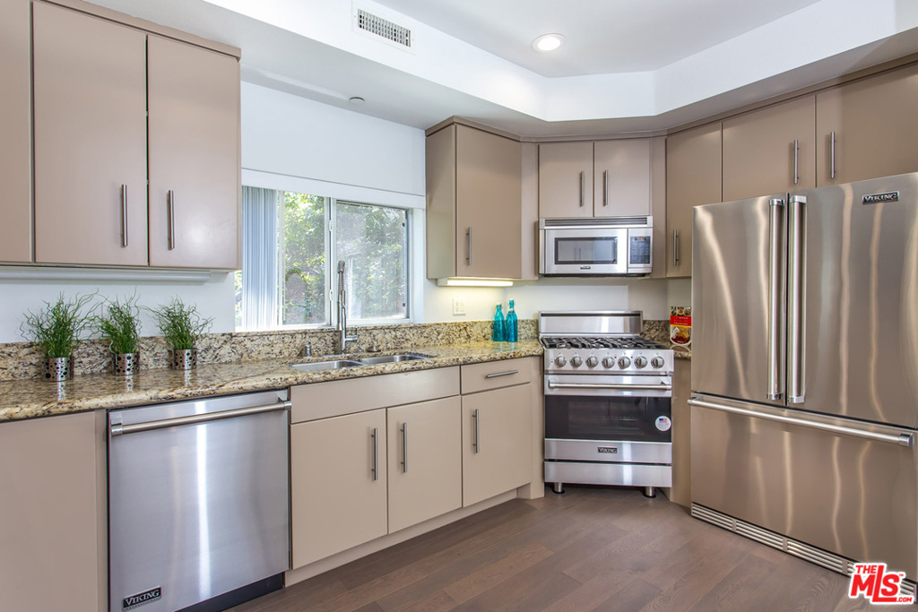 Sophisticated townhouse located in extremely popular NoHo Arts District. This bright end unit has been recently upgraded with beautiful engineered hardwood floors, new carpeting, fresh paint and more! Spacious eat in kitchen with exceptional cabinet space, stainless steel under mount sink, professional series faucet; conveniently located adjacent to outside patios. The second floor includes 2 guest suites as well as a flexible office / den space. The master suite boasts large walk in closet, his and her sinks and large private sun deck. Conveniently located to public transportation, theaters, restaurants, bars and more! SIDE BY SIDE PARKING!