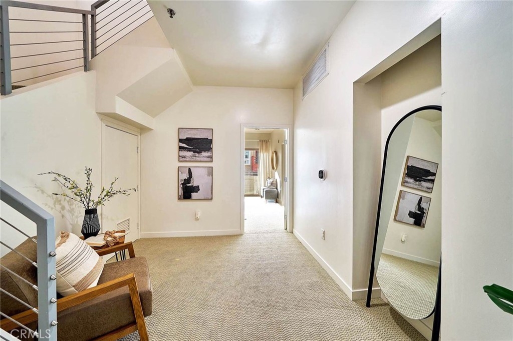 Discover this modern open floor plan, 2 bedroom/ 2.5 bath, two level condominium in the uniquely walkable cultural Noho Arts District, just minutes from the 170 Freeway and 101 Freeway. Built in 2008, this quiet, well-maintained building with only 39 total units, offers gated entry, gated subterranean parking with 2 assigned parking spots, guest parking, private storage space and fitness room/gym, next door to the unit. Enter to an open living area with recess lighting, wood flooring, patio area, under stair closet and washer/dryer in guest bathroom. Kitchen features plenty of cabinet space, quartz countertops, backsplash, and appliances. Walk-down the stairs to the master bedroom with walk-in closet, balcony, and bathroom with separate double floating vanity sinks. The adjacent bedroom includes a large closet with mirror closet doors and its own on-suite full bathroom with trendy floating vanity. Great location near restaurants, vibrant night life, shopping, theatres, art/dance/fitness related activities and Metro Red (subway) Line that connects North Hollywood to Downtown Los Angeles. This is a must see!