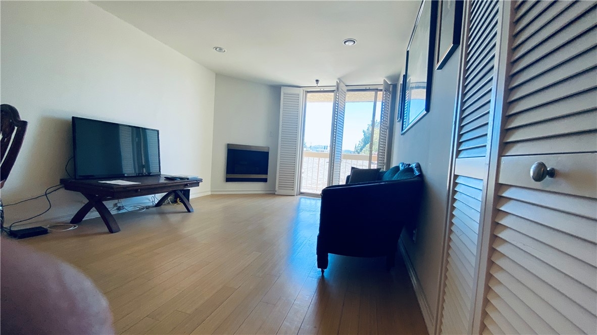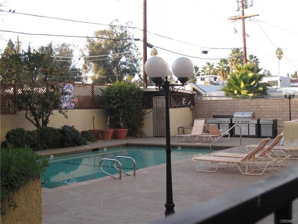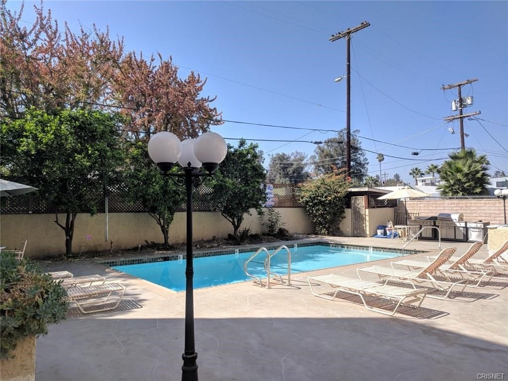 Location! Location! Location! One bedroom condo in the heart of North Hollywood Arts District! Walking distance to restaurants, theaters, shopping, North Hollywood Park, Valley Village Park. Centralized location to transportation, Metro Redline, Bus stops and freeways. Enjoy family oriented living in prestigious, Bakman Towers. Gated secured building with key entry & elevators for safety & piece of mind. Complex offers beautiful sparking pool, BBQ area. Fitness Center, community laundry room. Entertainers Delight! Formal living room with cozy gas fireplace. Elegant wood bamboo floors & Dramatic vaulted ceilings. Sliding doors to open balcony to overlook city lights at night. Enjoy cooking and entertaining your guess while serving food & drinks at adjacent breakfast bar. Convenient amenities include easy access to dishwasher and double stainless steel sink. Huge Master suit, walk-in-closet. Full bathroom with tub & shower. Separate vanity area. Central A/C & Heating. Complex is pet friendly. Two tandem parking spots with storage container in gated secured areas.sold as-is