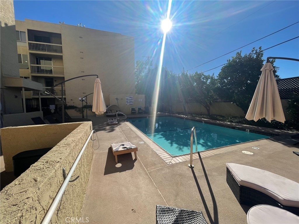 Welcome to Bakman Towers! Turnkey 3rd floor unit that has an updated kitchen with quartz counters and stainless steel appliances, breakfast bar, open floor plan to living room with wet bar and fireplace with a balcony that overlooks the pool, trees and city lights! The bedroom is very spacious and bright with a huge walk-in closet right by. The complex has been repainted throughout the interior and has new flooring. The gated community includes a newer intercom system, pool, exercise room, laundry, recreation room, and underground parking with 1 assigned space and EV charging stations. Located in the NoHo Arts District close to restaurants, bars, shops, parks, gyms and more. Laundry may be able to be installed in unit. Conveniently located near the 170, 101 & 134 freeways and the North Hollywood Metro Station.