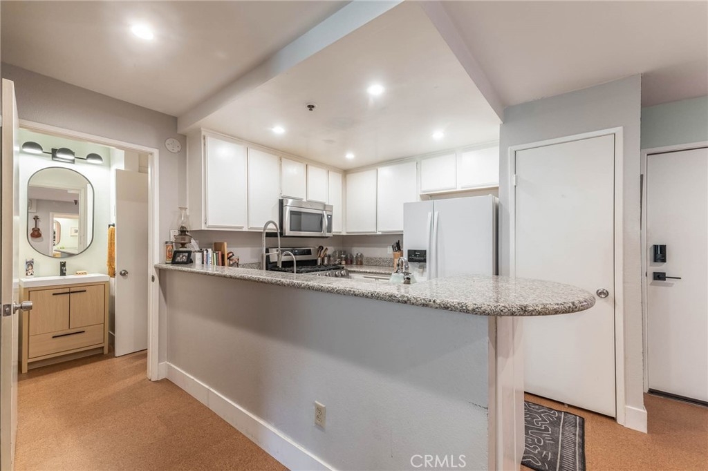 NOT JUST A CONDO - THIS IS A LIFESTYLE. You're minutes from the Valley's hottest nightlife destination - the NoHo Arts District. This is the walkability score of 95/100 you deserve. Rare TOP-FLOOR penthouse-like unit with rare vaulted ceilings and 2 master suites. Most units are 1 bedroom. Furthermore - you are grandfathered into a WASHER/DRYER INSIDE UNIT. You are no longer allowed to add them yourself! Even better - and this alone is worth the price of admission in L.A. - you get FOUR DESIGNATED PARKING SPOTS. Yep - you are grandfathered in. Use it for storage or parking - when your friends come over to party at El Tejano, Fat Dog, or Brickyard Pub, they now have a place to park and pre-game. This is what it's like to get grandfathered into privilege! The condo itself is very trendy. You are invited with premium-sourced eco-friendly cork floors. It has been continuously saged - the energy is ~pristine~ The granite countertop-kitchen opens to the high-ceiling living room. A top-floor balcony opens to peek-a-boo views of the Valley. Both bedrooms have a closet and private UPGRADED bathroom. Use one for an office, guestroom, workout room, or whatever you desire! The HOA has a pool with multiple lounging areas, and recently upgraded BBQ area. Its placement in the building is in the back, so you're not surrounded by windows looking down on you. This is the lifestyle you deserve. It's not just a purchase - you are now in the Arts District.