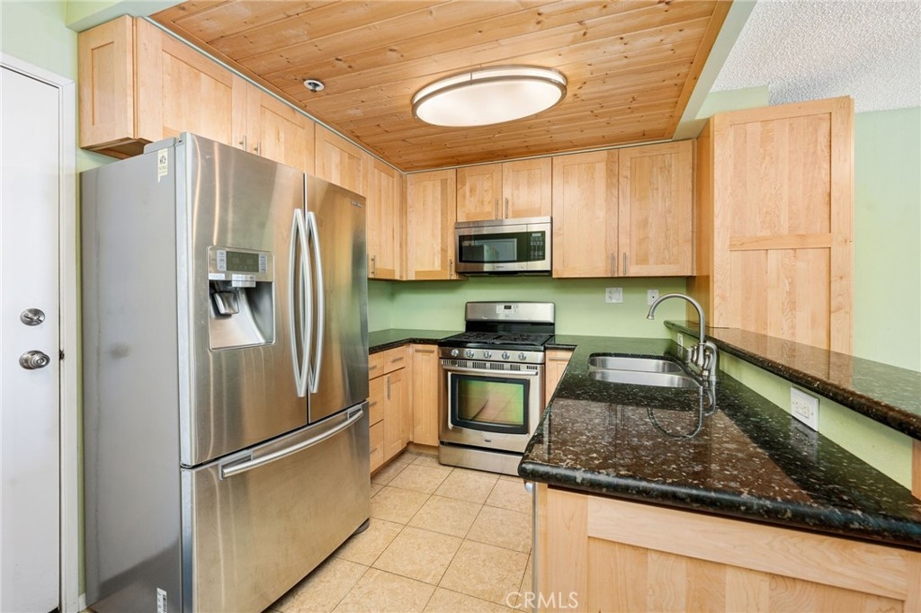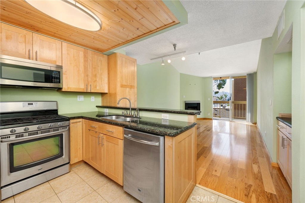 Welcome to this fantastic TOP FLOOR condo in the desirable NOHO Arts District! This 1 bed/1 bath unit offers the perfect open layout filled with natural light. It features a spacious living room with beautiful hickory floors, high ceilings, a gas fireplace to relax at the end of the day and a great balcony to enjoy the LA weather. A very nice kitchen with appealing maple cabinets, granite countertops and pine wood ceilings. Large bedroom and walk-in closet. Central heat and AC. This unit comes with 2 assigned tandem parking spaces. This amazing secured gated community includes an intercom system, exercise room, laundry room, recreation room, community pool, upgraded BBQ, outdoor lounge seating areas and EV charging stations. It is conveniently located near great shopping, dining, outdoor recreation, the 170, 101 & 134 freeways and the North Hollywood Metro Station.