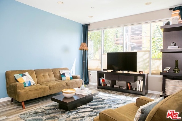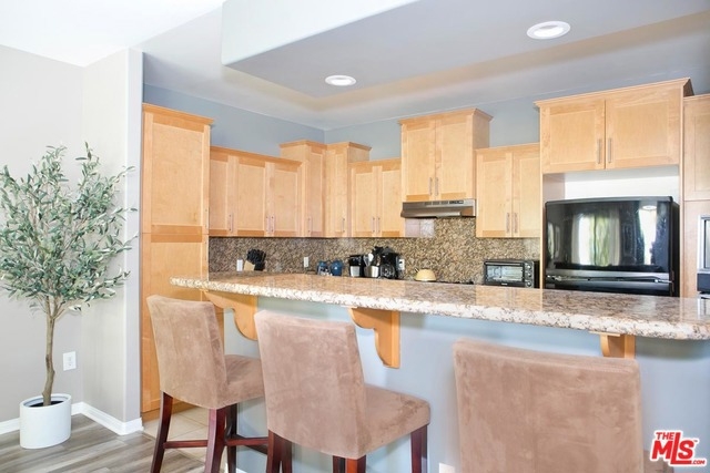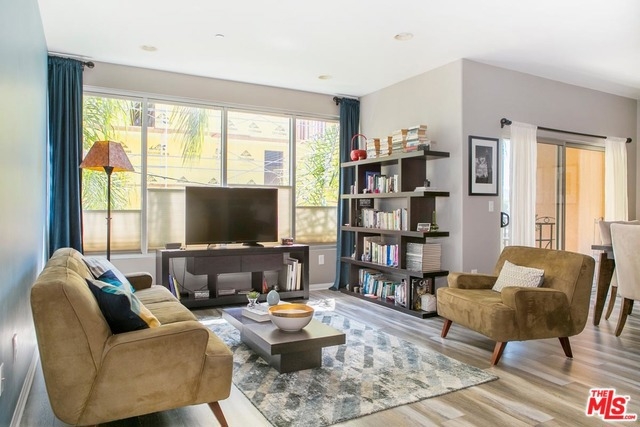 Tucked away on a residential side-street in the happening NoHo Arts District, this updated three-bedroom condominium is a special find at a great price. The spacious contemporary unit was built recently with an open layout presenting oversized windows, hard surface flooring and glass sliders to access your private balcony, a sweet spot for morning coffee or evening relaxation. In the large kitchen find stainless appliances, peninsula dining and a built-in wet bar. The Master bedroom is ensuite and there are two more bedrooms for guests, roommates or a home office. Enjoy in-unit laundry, central heat and air conditioning, and two deeded parking spaces. Amenities in this recently-remodeled community include the gym equipped with Peloton gear and wifi, and a covered outdoor lounge with pool table. The heart of the Arts District is just a few blocks away offering take-out options galore and the coming-soon Whole Foods 365. Studio City, Burbank and Hollywood are within easy reach.