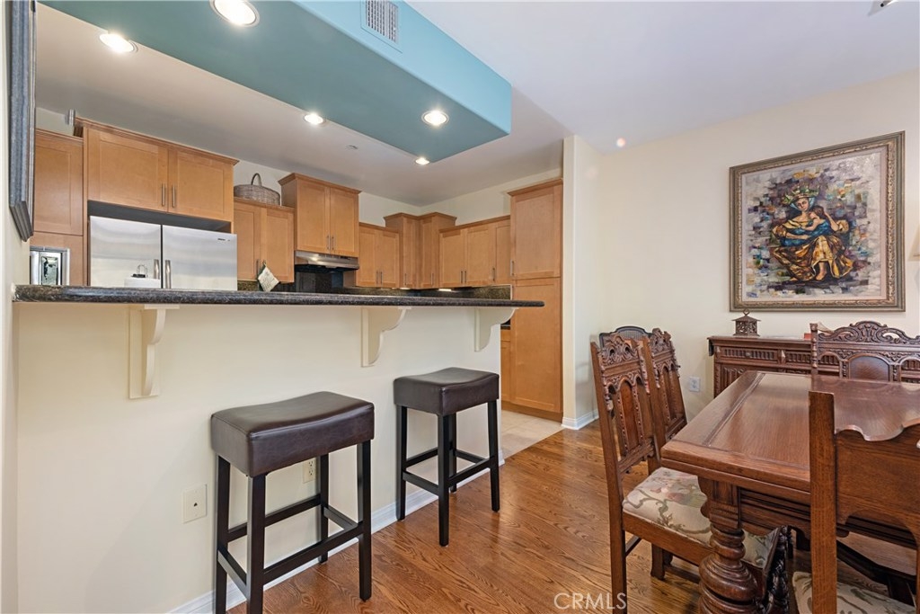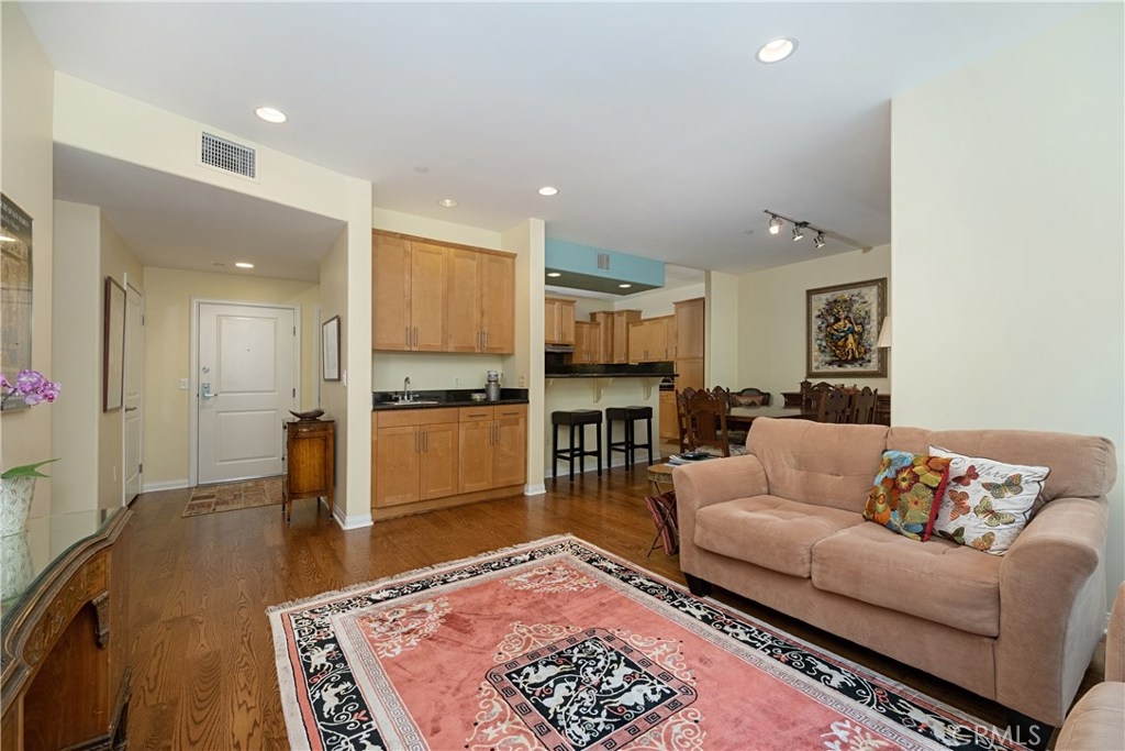 Located in trendy NoHo Arts district this desirable three bedroom, two bath, one level condo feels like a home on a quiet residential street. There are wood floors, high ceilings, recessed lighting, double panel windows and central air and heat. Spacious kitchen is highlighted with granite counters, breakfast bar, pantry, stainless appliances and abundance of storage. Versatile floor plan with open dining room and glass doors open to balcony. Refrigerator, washer/dryer are included. The oversized master suite has large walk-in closet with organizers and master bath has dual sinks, separate soaking tub and shower. The other two bedrooms are perfect for roommates, guests or home office. Other amenities include two car parking in gated garage, and a state of the art gym that even has Peloton machines! There is also a large community atrium for entertaining with pool table and bar. Close to Tujunga Village, Toluca Lake, downtown LA, and only minutes to restaurants, metro and shopping!