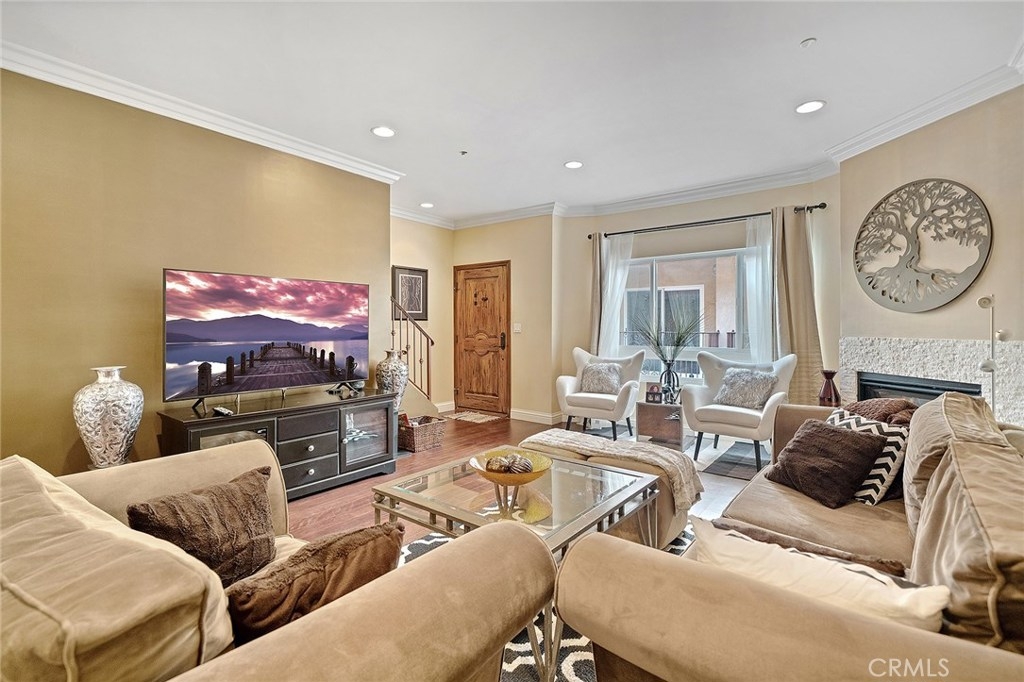 Immaculate Spanish Inspired Tuscany Townhome! Live in luxury in this stunning Valley Glen home spanning 1,800 sqft. You’ll be impressed upon entry as an open living area greets you with shining hardwood floors, crown moldings, recessed lighting, and a gas fireplace. The chef’s dream kitchen can be seen from a cutout wall from the living area, welcoming effortless entertainment and boasting granite counters, custom cabinetry with built-in lighting, and stainless steel appliances. A bonus room on the first floor is the perfect space for a children’s playroom, office or home gym. Privacy awaits upstairs on the third level with the sumptuous master suite with walk-in closet, built-in wall shelving, en suite featuring dual custom vanities, marble counters, sleek tile floors, large soaking tub and glass-enclosed shower. The second bedroom has its own bathroom as well and it's very own walk-in closet with a total of 3 throughout the home welcoming guests or additional family members. Additional amenities include washer and dryer hook-ups located on the first floor and next to the private two-car garage and 2 small balconies. Great area, minutes from studios, delicious restaurants, shopping, school, and much much more, don’t miss this immaculate Tuscany townhome!