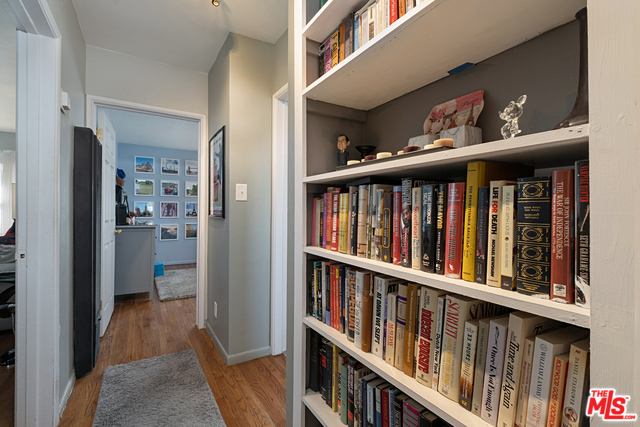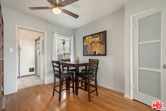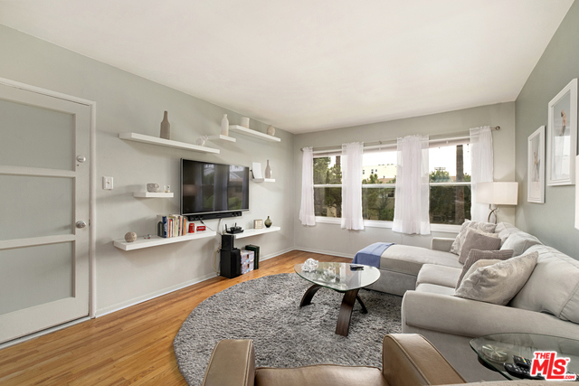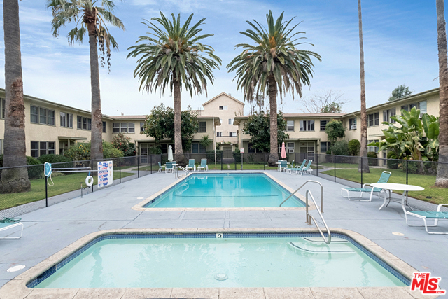 This two bedroom, one bath unit is in the NoHo Arts District. The unit has an abundance of natural light. The open living and dining room area has hardwood floors and a soft palette of colors throughout. There is a central hall which leads to the two bedrooms and one bathroom. The kitchen has been recently renovated and comes complete with stainless steel appliances. This unit has a front and rear entrance giving easier access to the one car garage. There is a beautiful and large center courtyard which has rows of tall palm trees , a pool, and jacuzzi. The complex recently replaced the roof on all buildings, refurbished the hallways, fresh slurry, and all buildings to be painted in May of 2020 per the seller.