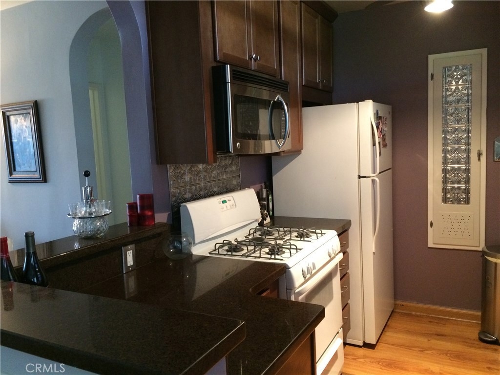 Fantastic Toluca Lake and NoHo Arts District adjacent location. Located in the highly desirable Cahuenga Gardens this top floor quiet and private condo has been renovated and is ready to be sold! Features include a remodeled kitchen with custom cabinetry, granite counters, stainless steel dishwasher and sink, separate dining area with access to patio, spacious living room with views of the hills and pool, full bath with stunning tile work and granite counters, double pane windows, wood-like flooring, smooth ceilings, lots of storage, private garage, close to studios, restaurants, entertainment and shopping!