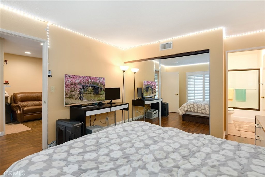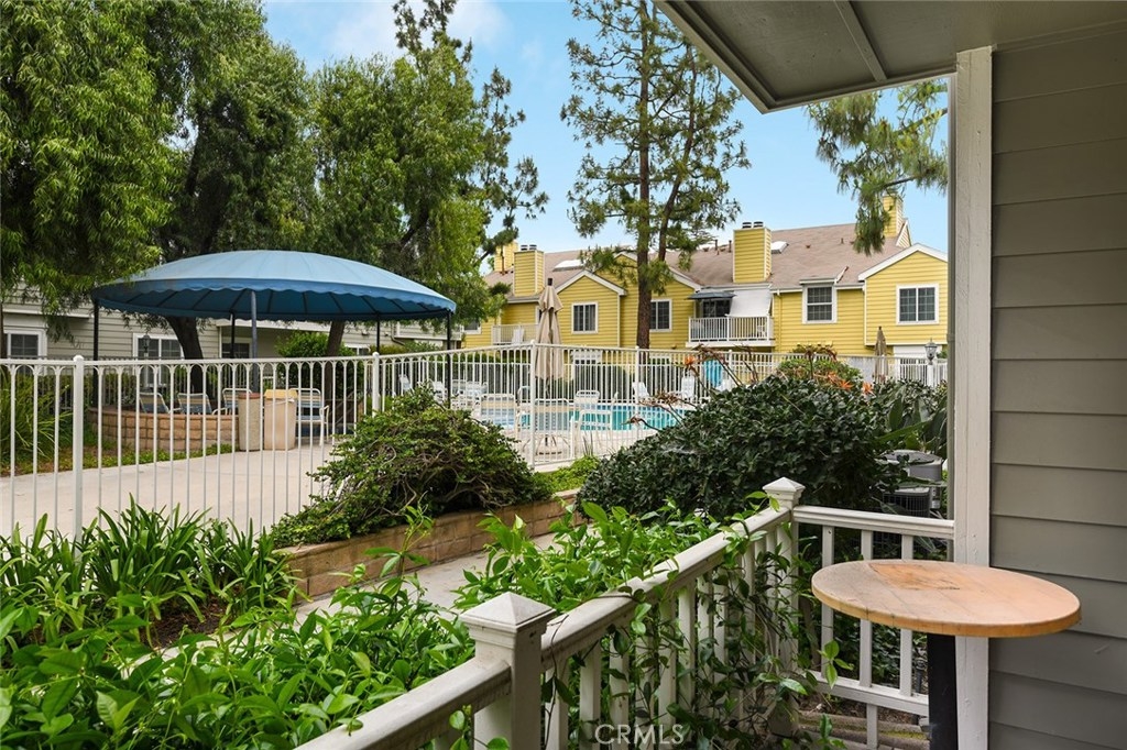 Desirable Cambridge Glen unit situated near the sparkling pool off the terrace. Some of the updates include: plantation shutters, kitchen counters and appliances, bathroom (shower, fixtures and doors), tankless water heater, exterior paint and soundproofing of doors, windows and slider. Open concept dining and living area with fireplace. Kitchen with direct access to the attached garage, offers stainless steel appliances and opening to the dining room. 2 private bedrooms at different ends of the unit ideal for roommates or family. Central air/heat, in-unit laundry, large storage attic in garage. Wonderful association amenities. Additional guest parking throughout. Within close proximity to the 5 freeway, shopping, restaurants and Burbank Airport. Move-in ready and a MUST SEE!
