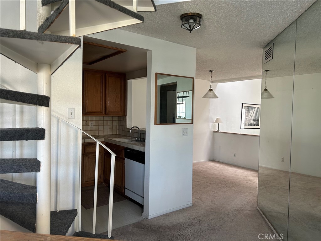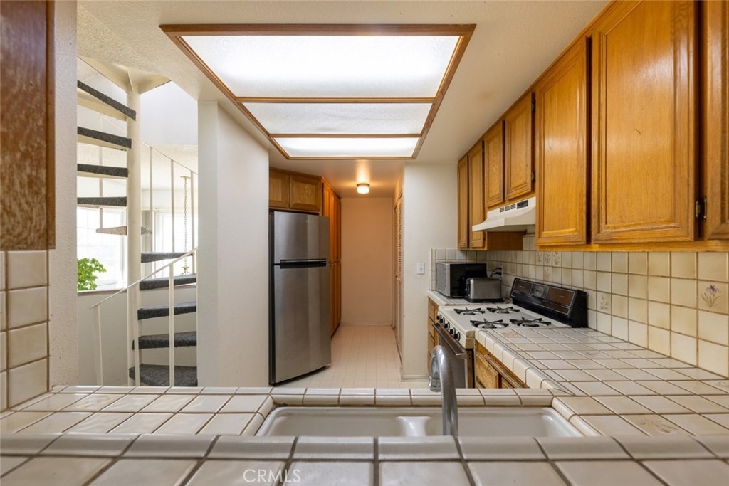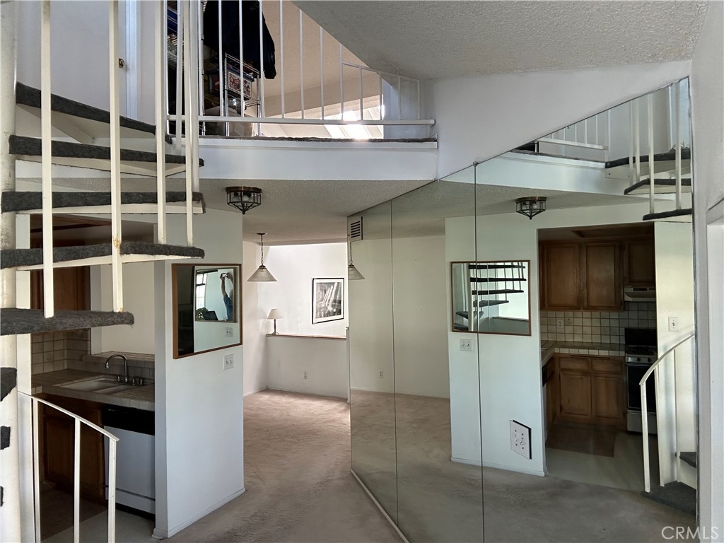 Welcome to 6622 Clybourn Ave #124, an outstanding multi-level style condo at 942 square feet (not including the loft). located in North Hollywood. This unique condo offers a great living space, boasting 2 bedrooms and 2 bathrooms serving as a blank canvas waiting for personal finishes. It is part of a Cape Cod style complex where its prime location within the community amplifies its appeal, featuring high vaulted ceilings that flood the interior with an abundance of natural light. Upon entering, you'll immediately notice the staircase leading to the main floor on the second level. The living room is spacious, bright, and open, complete with a gas fireplace and skylights. The well-appointed kitchen provides ample storage and counter space. The generously sized master bedroom exudes warmth and comfort and includes a mirrored closet for additional storage. An enchanting spiral staircase leads up to the loft, offering versatility as a home office or playroom, complete with two walk-in storage closets. Both bathrooms are thoughtfully designed, with one featuring a shower in the tub and the other a standing shower. This lovely condo offers convenient amenities, including an in-unit washer and dryer, double-paned windows, and a recently replaced roof (only 3 years old). Additionally, the attached garage provides both parking space and additional storage, ensuring convenience. Another carport space is available in the community, along with ample guest parking. To enhance your quality of life, this unit also boasts an inviting balcony overlooking the swimming pool and a hot tub set in a lush courtyard. In addition, the HOA covers the costs of water, trash, grounds, security and landscaping.