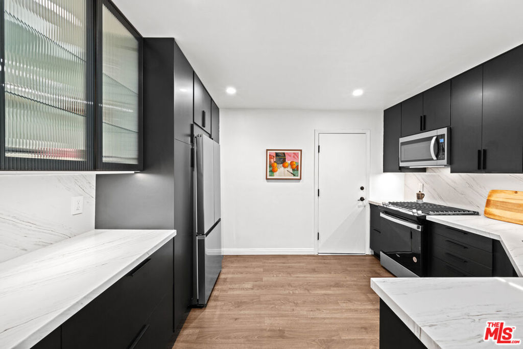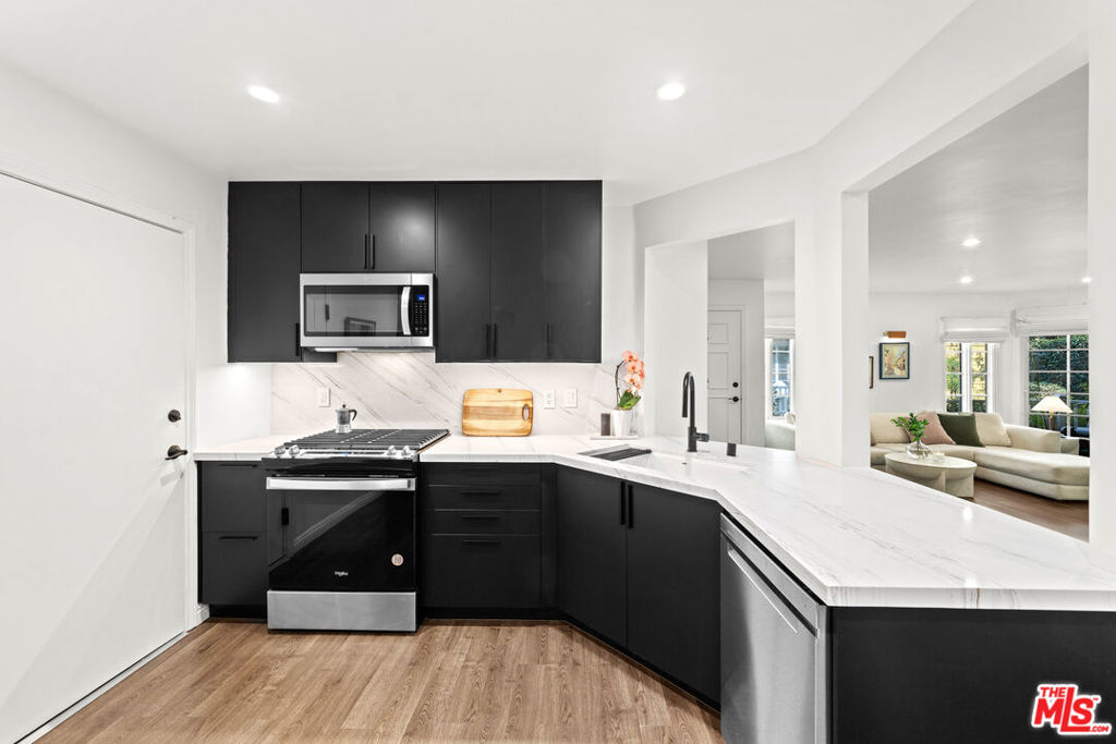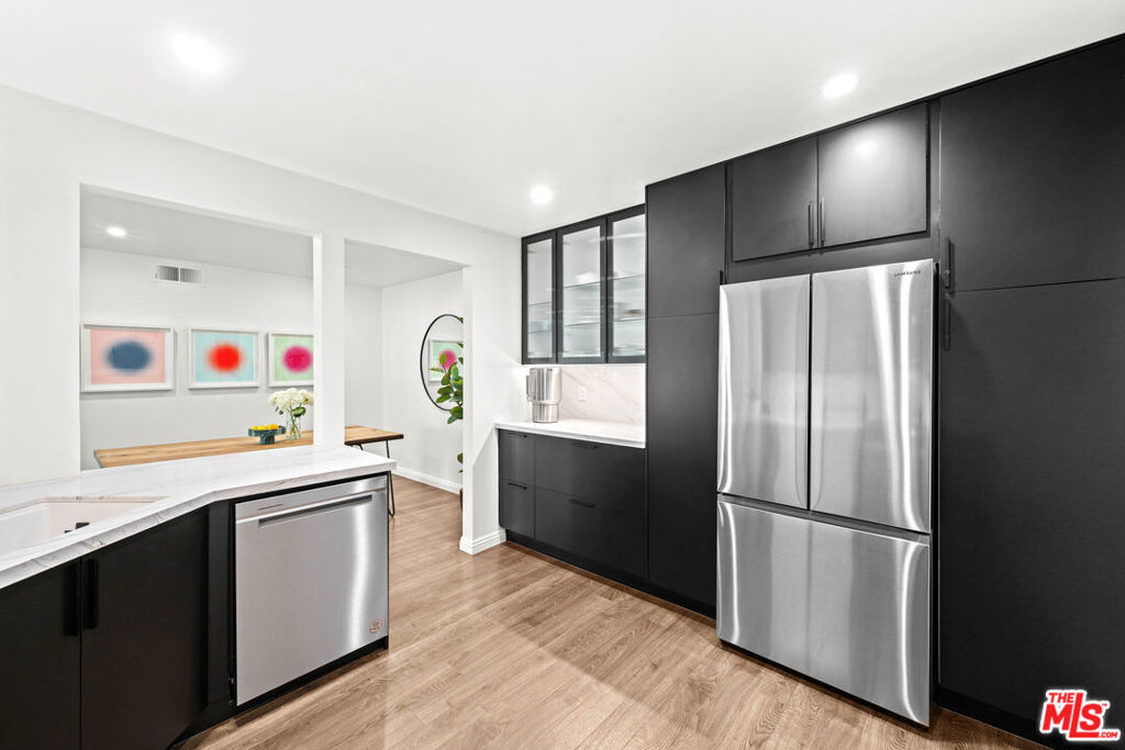 Welcome to Cambridge Glen! Tucked away in a picturesque Cape Cod-style community, this beautifully updated unit offers a bright and spacious open-concept living and dining area, complete with a cozy gas fireplace, recessed lighting, and direct access to a private patio. The remodeled kitchen features modern finishes, a convenient breakfast bar, and a pass-through that enhances the flow of the space.The primary suite includes a stylishly renovated en suite bathroom, while the generously sized guest bedroom is complemented by a remodeled guest bathroom. Additional highlights include a private garage with laminate flooring and a mezzanine level, providing excellent extra storage. Conveniently located with easy access to the Metrolink station, the 5 and 170 freeways, Burbank Airport, the NoHo Arts District, and Universal Studios.