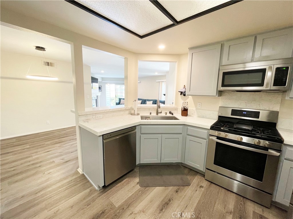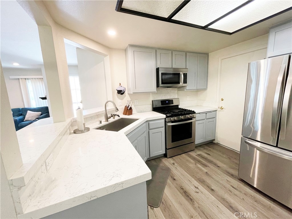 Experience resort-style living with the comfort and convenience of your dream home in the highly sought-after Cambridge Glen Complex.Upon entering, you'll be greeted by a spacious and open living area, complete with a cozy fireplace and plenty of natural light, creating a warm and inviting atmosphere perfect for both relaxation and entertaining guests. The well-equipped kitchen boasts stainless steel appliances and plenty of counter space, making it ideal for preparing meals and hosting dinner parties. The property also features two remodeled bathrooms and two bedrooms. Step outside to your very own private patio, perfect for enjoying your morning coffee or hosting a BBQ with friends and family. The Cambridge Glen Complex offers a peaceful and quiet ambiance, making it an ideal place to call home. Located near Universal Studios, restaurants, and schools on the Burbank and North Hollywood border. The unit comes with a private one-car garage that offers ample overhead storage. In addition to the garage, there is a covered parking space and ample parking for guests. The home also features central AC, and laundry facilities in the kitchen. The exquisitely landscaped community provides a peaceful and calming atmosphere with its pool and covered spa, further enhancing the serene ambiance of your new home.