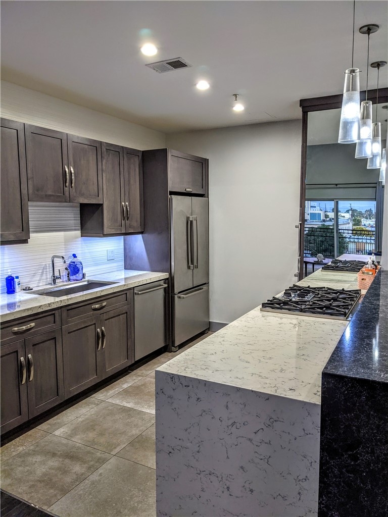 Stunning 3Br & 3 full Ba Top Floor S/E corner Unit with views located in NoHo Art District featuring 2 Master Bedroom suites and a large 3rd bedroom, recently upgraded with the most discerning choices of fixtures, Custom Solid Doors & Sliding doors, Custom Closet Organizers, New Custom Built Kitchen with top of the line Appliances, Quartz counters, finest woods Cabinetry, Country sink, Self Closing Drawers with Pull Outs, Spice Drawer cabinets, Double convection ovens, luxurious tiles floors. Bar with Wine cooler. 16 foot ceilings, LED Recess and light strips. Fully remodeled and upgraded Bathrooms. Laundry in the unit. The renovation included the creation of large Storage spaces above existing closets in the 2 Master Bedrooms. 2 Tandem Parking Spaces, Spacious elevator, Gym. A few steps from the Heart of the Hottest upcoming LA area with all the Art galleries, restaurants, clubs, shopping entertainment.