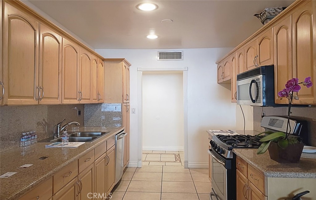 Welcome to 2 bedrooms and 2 bathrooms condo in North Hollywood featuring a kitchen with granite counters, There is a large living room, the unit on the first floor which is very easy to access, a very spacious living room, and combines with a dining area. Community pool, there is a washer and dryer in the unit and one assigned parking space. Closed North of Harvest Moon on Magnolia with easy freeway access.