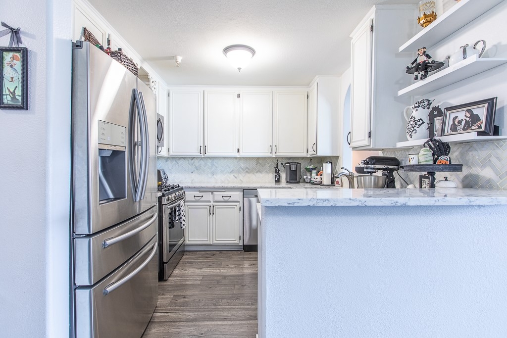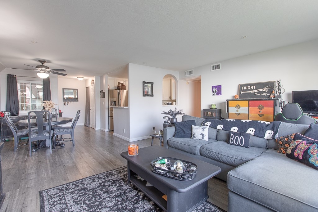 Location, Location, Location! You will fall in love with this 2 bedroom/ 2 bath / 1,116 sqft North Hollywood Arts District Condo. This condo has many great features including an attractive floorplan, corner unit with great views, ample natural light, upgraded laminate flooring throughout, a new HVAC unit, upgraded American Vision double pane windows, a large master bedroom, custom closets, stackable laundry in the unit, large balcony with ample storage, 2 tandem covered parking spots and a fireplace in the living room. The upgraded kitchen has quartz countertops, stainless steel appliances, and new laminate flooring. The upgraded bathrooms have new vanities and resurfaced tubs. Other perks of this unit include its close proximity to many great restaurants, the Metro Red Line, NOHO West shopping center, and the 170 and 134 freeways. Definitely, a must-see property!