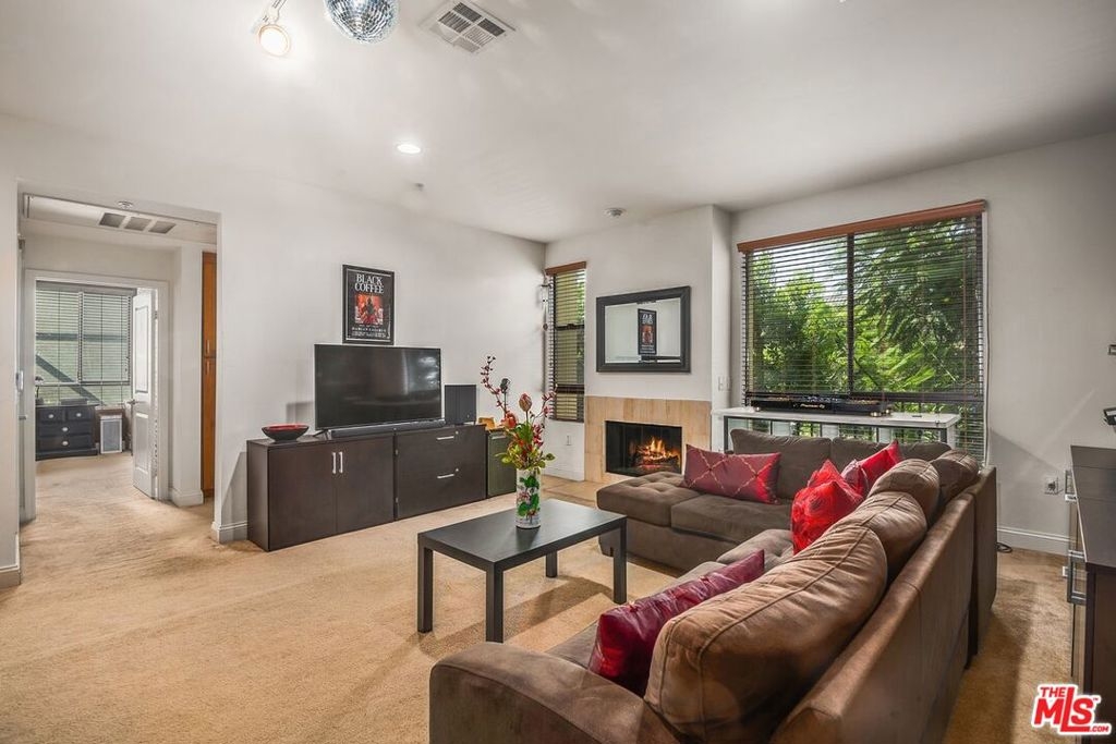 Discover a new lifestyle at this spacious 2 bedrooms 2 baths corner unit with a balcony, one of the largest units in the complex. At entry you will be amazed at the dramatic open floor plan, high ceiling and large windows overlooking beautiful trees. Equipped with stainless appliances, the kitchen seamlessly flows to the dining area and living room with a fireplace. Master bedroom has a walk-in closet, en suite bath recently redone with a designer quality gray vanity, marble top and matching large mirror. Having a balcony on the corner is rare and a plus. Both master and second bedrooms open out onto the balcony overlooking the lush trees. Amenities include rooftop access with views, courtyard lounging on the first level, fitness room, 2 tandem spaces in secured parking with extra spaces for guests and two elevators. Within close proximity to the new NOHO West, NOHO Arts District, parks, food and entertainment, this amazing unit is a must-see!