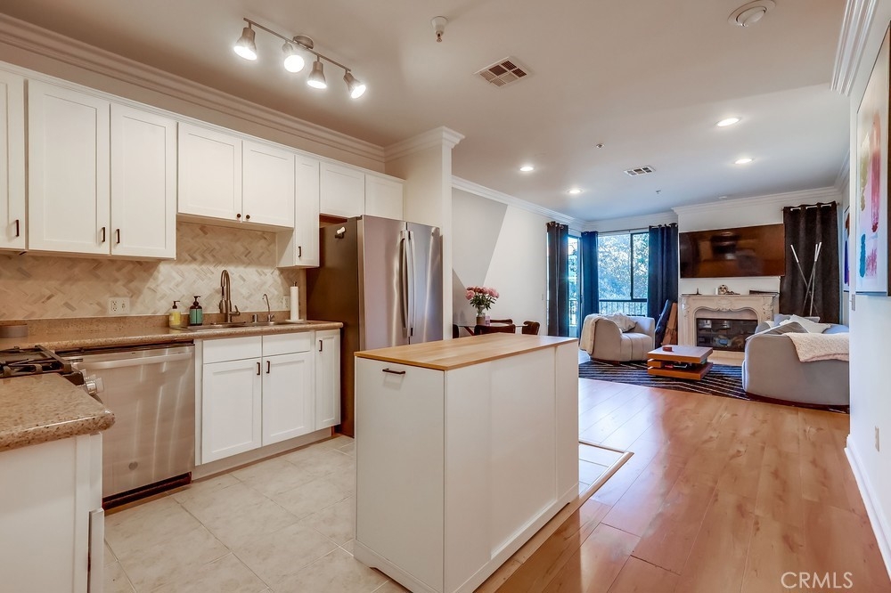 Move right into modern luxury! This beautifully renovated 2-bedroom, 2-bathroom condo in the heart of North Hollywood offers a perfect blend of style, space, and convenience. Step inside to a bright, airy interior defined by crisp white cabinetry and walls, soaring vaulted ceilings, and an expansive living room adorned with brand-new window treatments. A cozy fireplace, recessed lighting, and new flooring throughout add warmth and sophistication. The heart of the home is a modern masterpiece—your kitchen—featuring sleek stainless steel appliances, a large stainless steel sink, and contemporary white cabinetry, flowing seamlessly into the spacious dining and living areas to create an inviting space for everyday living or entertaining. Retreat to the private primary suite, complete with a generous walk-in closet, a home office nook, and a newly remodeled bathroom. The versatile second bedroom is ideal for a guest room, office, or roommate setup, with a second full bathroom conveniently located nearby. Additional highlights include in-unit laundry, two covered, gated parking spaces, and central air. The building offers fantastic amenities, including a rooftop deck with sweeping views of the San Fernando Valley, a fitness center, and secure entry. Located in a vibrant neighborhood near Studio City, Valley Village, and Sherman Oaks, you’re just minutes from major highways, public transit, and the NOHO WEST shopping center with Trader Joe’s, Nordstrom Rack, restaurants, and entertainment. This move-in-ready gem delivers both comfort and convenience—the perfect place to call home in one of LA’s most sought-after areas.