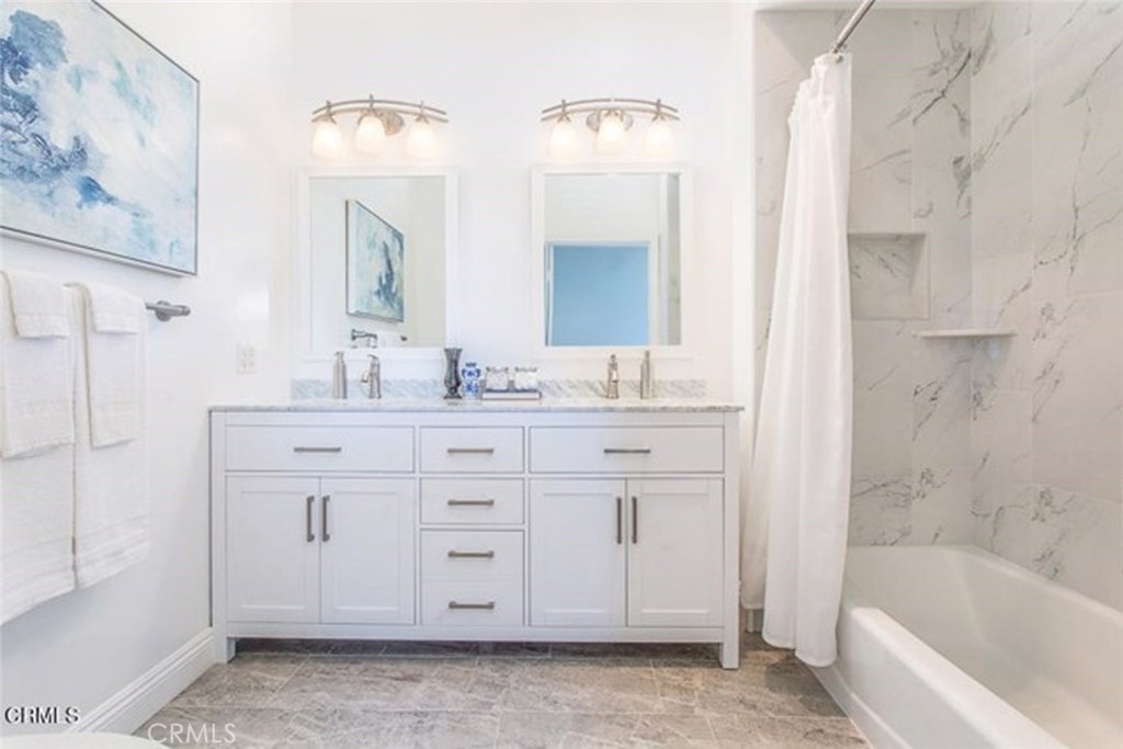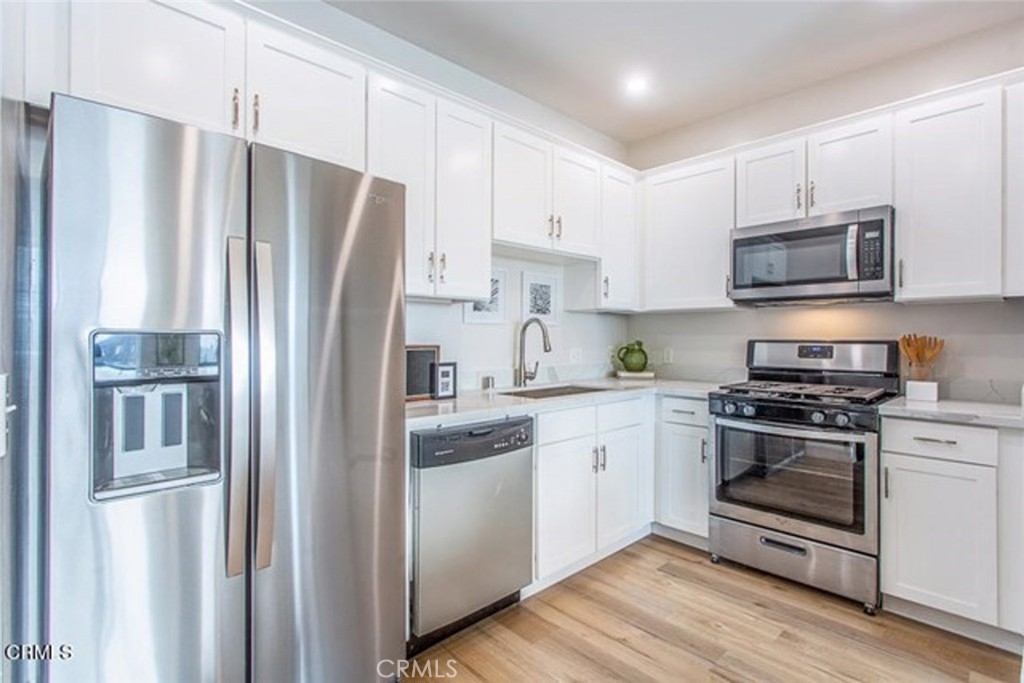Move right into modern luxury! This stunning, newly renovated 2-bedroom, 2-bathroom condo in North Hollywood is ready for you. Step inside to a bright and airy space defined by clean white cabinets and walls and an expansive living room featuring high vaulted ceilings and brand new window treatments on large windows. Plus, stay cool and comfortable all year round with a brand new HVAC system and condenser, perfect for the approaching summer. The heart of the home, the kitchen, is a modern masterpiece with sleek stainless steel appliances, a large stainless steel sink, and a brand new dishwasher, all set against crisp white cabinetry. Your primary suite offers ultimate comfort with a private bathroom boasting his and her sinks, a combination shower/tub, and a desirable walk-in closet. The versatile second bedroom can easily adapt to your needs – a perfect office, guest retreat, or roommate space, with a separate full bathroom conveniently located nearby. Included are two covered, gated, tandem parking spots. This prime location puts you in a great neighborhood with endless dining and shopping options, and just a few minutes' drive to popular Studio City, Valley Village, and Sherman Oaks.