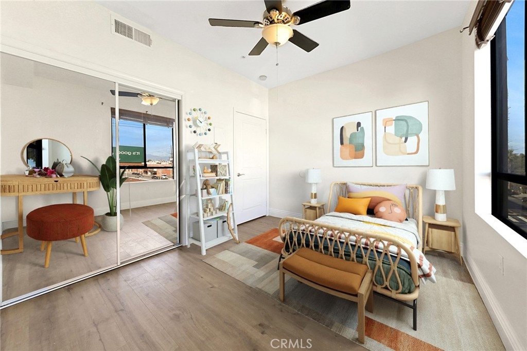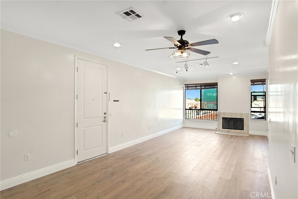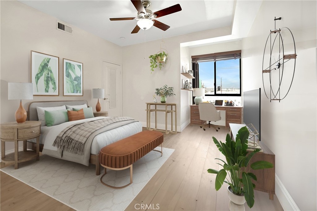 Elegantly renovated 2-bed, 2-full bath condo featuring a modern kitchen, cozy fireplace, spacious master bedroom with a home office nook, upgraded master bathroom, brand-new flooring, stylish living room fan, and fresh paint. Enjoy modern amenities, secured gated entry, gym, meeting room, rooftop patio with breathtaking views, and enclosed underground parking with two assigned spaces very close to the elevator. Conveniently located near shopping, restaurants, and major studios. Must see to appreciate!