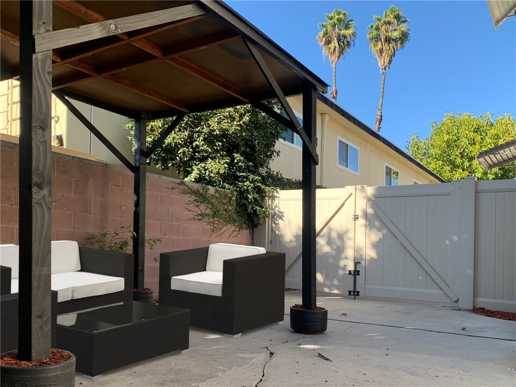 Who says size doesn't matter? They haven’t visited this stunning, updated town house with 1,812 sqft of living space! There are 3 beds + 2.5 baths + Den + BACKYARD and a 2-car tandem garage. Espresso color laminate floors and freshly painted, it’s move -in-perfect. This sizable home will check many boxes on your needs and wants list! Upgraded kitchen includes dining area, breakfast bar, granite counter tops, tidy white gas range, refrigerator & matching cabinets. Remodeled baths with tile flooring & brushed nickel fixtures. Combined living & dining area accommodates your big screen TV. The primary bedroom is a suite. The den with balcony and closet would make the perfect office or 4th BR. Laundry room on the upper level includes washer & dryer. Central HVAC is only 5 years old. Ahh the backyard…It's enormous! Grow your own vegetables in the raised planter boxes, dine al fresco on the patio, or relax under the gazebo on those hot sunny days. Situated at the back of this 4 unit complex privacy is assured. Morrison Terrace Condos have low HOA dues, too. Once we triumph over the Coronavirus and return to the new normal, hipsters and the rest of us can reunite and celebrate at the Idle Hour, or one of the many eateries along Magnolia Blvd. The Noho Arts district is home to numerous theaters, galleries, cafes & shops. Metro Red Line Station is a bike ride away. In the meantime enjoy the abundance of space inside and out from which to work, play, garden or just chill.