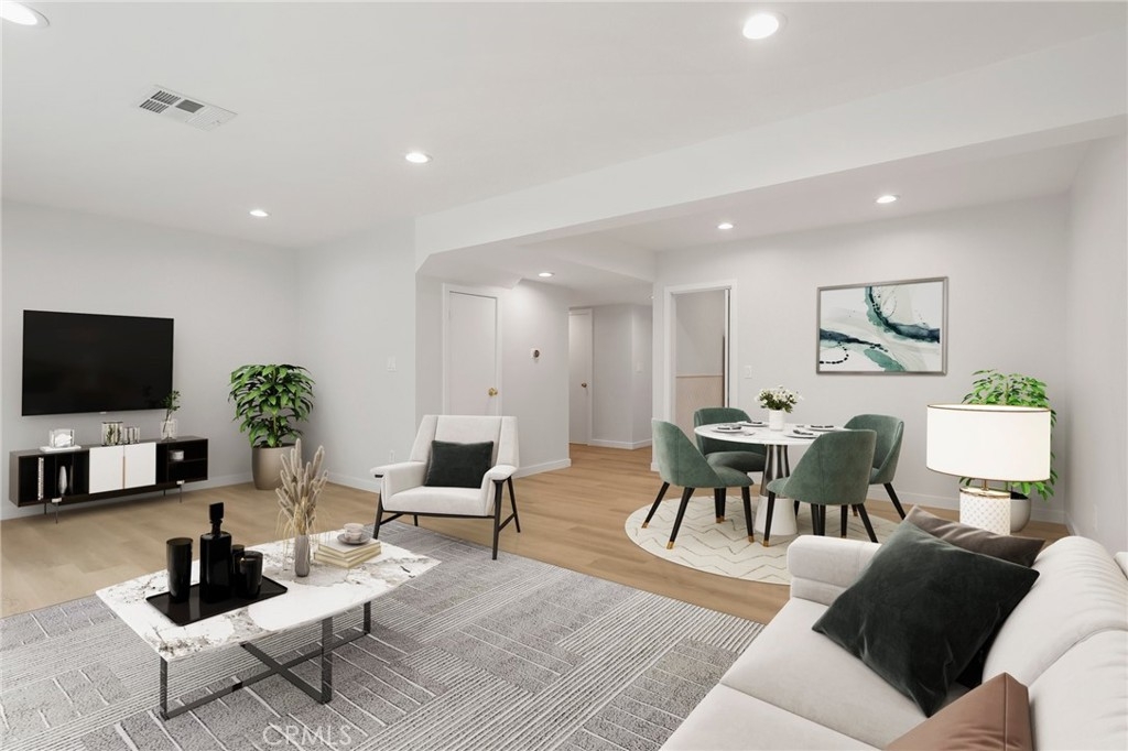 Offering this bright and sophisticated townhome in highly coveted North Hollywood. Recent updates to this spacious unit include brand new hardwood flooring, fresh paint, and recessed lighting throughout. First floor features a Kitchen with generous cabinet space, large Living Room, Dining Area, and Powder Bathroom. Adjacent to the Living Room is an oversized private Patio offering the ultimate indoor/outdoor entertainment and relaxation experience. The second floor hosts a grand Master Suite featuring an en-suite Bathroom, two spacious secondary Bedrooms, full Bathroom, and IN-UNIT WASHER/DRYER. In addition to its charming features, this townhouse is accompanied by TWO Side-by-Side carport parking spaces, each with their own large storage closet. The complex is meticulously maintained with beautifully landscaped grounds and three community Pools. There is also a large Recreation Room and Playground. Located near major freeways, such as the 170, 101, and 405, this unit offers easy access to Universal Studios, Ventura Blvd, Movie Theaters, LA Fitness, Burbank Airport, the newly opened NOHO West shopping mall and the best dining/entertainment that North Hollywood has to offer.
