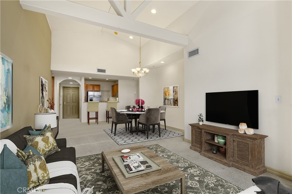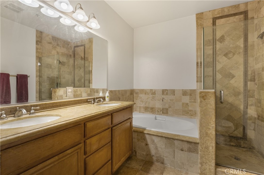 Here is your opportunity to own a spacious penthouse unit in the sought after Park Toluca building. This well thought out floor plan offers a spacious kitchen with granite counters and ample storage space. The breakfast bar opens to the living and dining areas with dramatic high ceilings and a cozy fireplace. Bedrooms are located on opposite sides of the central living area for optimum privacy. The primary suite features a fireplace, walk-in closet and linen cabinet while the primary bath offers dual sinks, a separate tub and limestone walk-in shower. In the secondary bedroom you will find a generous bathroom and separate vanity area, along with a linen cabinet and two closets. From the balcony you can enjoy beautiful city lights and mountain views. Additional features include secure access, two tandem parking spaces, convenient in unit laundry, recessed lighting and travertine floors. Impeccable grounds, dual BBQ’s, sparkling pool and spa and lushly landscaped common areas. Professionally run and a well-managed HOA.