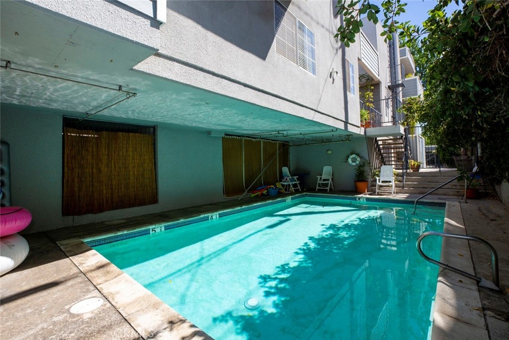 Warm and inviting, this 2 bedroom 2 bathroom condo/townhouse in the up and coming NoHo area is ready for you to move right in. Only 12 units in the complex gives owning here an exclusive feeling. Enter through the main common door and you’ll be inspired by the lovely courtyard filled with greenery. Walk into this freshly painted property with laminate flooring. A warm and inviting fireplace anchors the high ceilings in the living/dining room combination. The large patio off the living room gives this property an indoor/outdoor feeling. The kitchen has crisp white counter tops and grey cabinets with stainless appliances and a brand new kitchen faucet. Head up stairs, but first, don’t miss the great storage under the staircase and ample space for your own stackable in-unit washer/dryer. The upstairs has brand new carpeting with a lovely window at the landing to provide more light. The second floor master bedroom is generously sized and has an onsuite bathroom with dual vanity, large walk in shower, bidet toilet, all updated last year. The master closet is deep and is the perfect set up for your personal closet storage system design. The second bedroom is a nice size with good closet space. The hallway bathroom has a brand new faucet and has tons of storage. The HOA covers EARTHQUAKE insurance, water, trash, and exterior maintenance. Building has a newer roof, updated pool equipment, pool is heated for part of the year. HOA MONTHLY DUES: $345.00 for all that! This unit offers underground tandem secure parking AND your own private and secure storage room. Walkable to cool eateries and bars. Commute time is better because this unit is centrally located to 170, 134, and 101 freeways. Make this your new home!