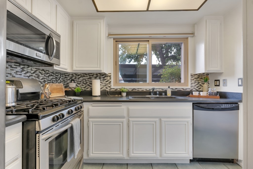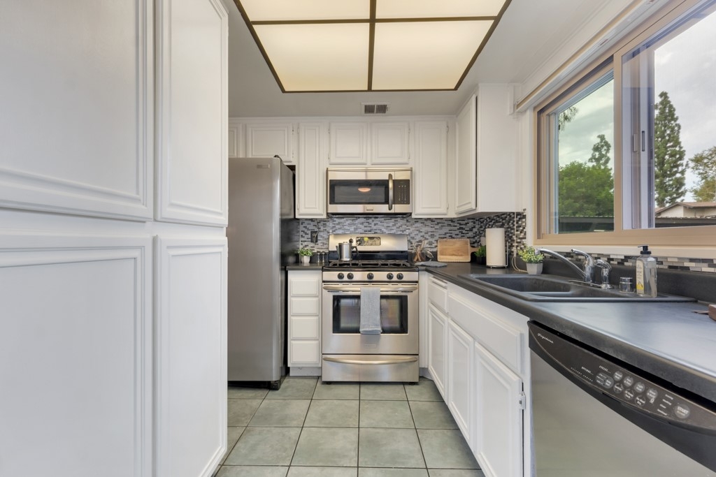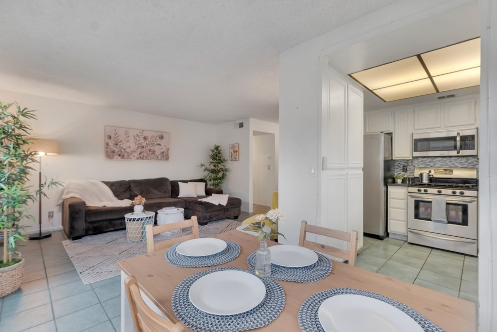 Welcome to this delightful 2-bedroom, 1-bath single-level end unit in the sought-after Pepperwood Village condo community. Step inside to a generous living room featuring a warm fireplace that flows effortlessly into the dining area—ideal for unwinding or hosting guests. The kitchen is equipped with sleek stainless steel appliances and includes all appliances plus a Nest thermostat for added convenience. In-unit laundry with a full-size washer and dryer is included in the sale. The primary bedroom offers a walk-in closet and a private patio. The unit comes with ONE GARAGE SPACE AND ONE CARPORT SPOT. Residents have access to excellent amenities such as a pool, spa, guest parking, green spaces, and building earthquake insurance. With the Burbank Airport retrofit completed in 2011 and close proximity to local dining and Burbank Airport, this home perfectly combines comfort and convenience. Don’t miss out on this fantastic opportunity!