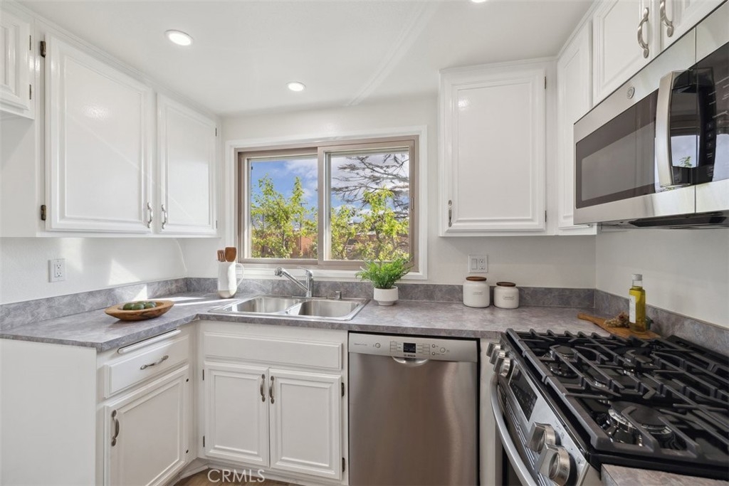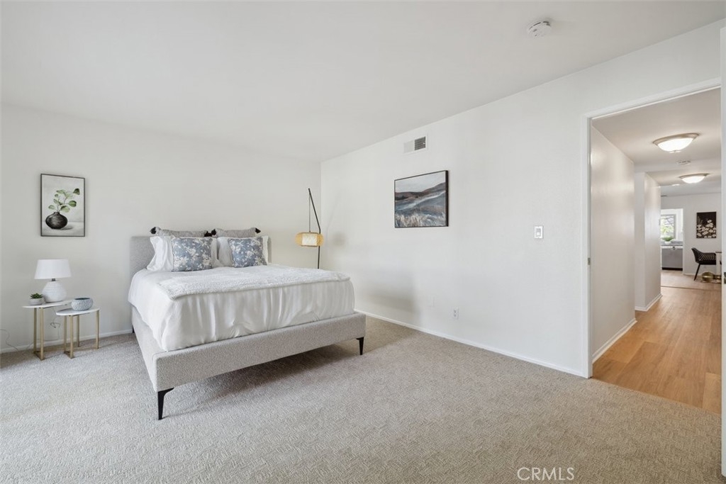 Spacious and beautiful 3 bedroom, 2 bathroom upper-unit condo in a fabulous location bordering Burbank! Enjoy living in a prime, centrally located condo within short distance from NoHo Arts District, Burbank Airport, Studio City, Hollywood, Universal Studios, Griffith Observatory, and many more top LA attractions! This light and bright unit is loaded with upgrades, such as new luxury waterproof flooring, freshly painted walls, brand new carpet in all the bedrooms, all new stainless kitchen appliances, new electrical and plumbing fixtures, and much more! The kitchen has brand-new stainless-steel appliances and new recessed lighting. There is a sunny window over the kitchen sink and ample cabinetry space. The light and airy family room is off the kitchen, and it offers a cozy fireplace and a patio door opening to the private patio. The large primary bedroom has an attached private bathroom and a patio door opening to private balcony. The primary bathroom has two sinks and a walk-in shower. The other two bedrooms share the hall bathroom, which has a shower/ tub combo. This unit has a laundry room with washer/ dryer hookups, and it comes with a shared 2 car garage + an additional carport next to the unit. The condo has a new water heater, new electrical panel, new toilets, new faucets in the bathroom and kitchen, new fixtures in the tub and shower, new laundry box plumbing, and a newer HVAC unit. Both roof and exterior paint are very new also. The Pepperwood Village complex has a community pool and spa, guest parking, and professionally landscaped common areas.