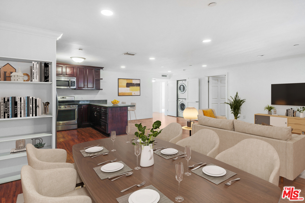 This spacious 3 bed, 2 bath condo is centrally located in the heart of the desirable NoHo Arts District on a quiet tree-lined street. This private 19-unit condominium was newly built in 2008 and features a gated entry and gated, covered parking lot. The unit has been immaculately maintained and features a generous open-concept layout with high-quality laminate flooring and recessed lighting through all common areas. The entertainer's kitchen features large granite countertops, ample storage, and stainless-steel appliances. Hidden from view in the hallway closet is an in-unit stackable washer and dryer and water heater purchased just last year. The airy, bright bedrooms have brand new plush carpeting and large mirrored sliding-door closets. There are 2 designated parking spaces in a gated underground garage. Minutes from trendy restaurants, movie theaters, shopping, a bike path, and the 170 and 134 freeway.