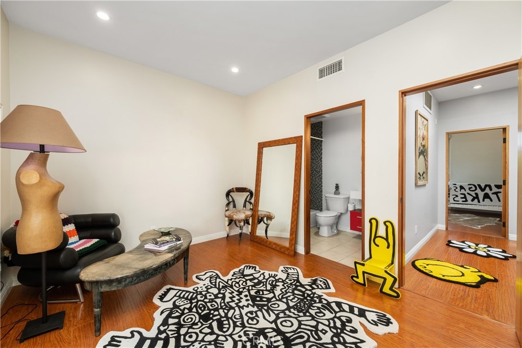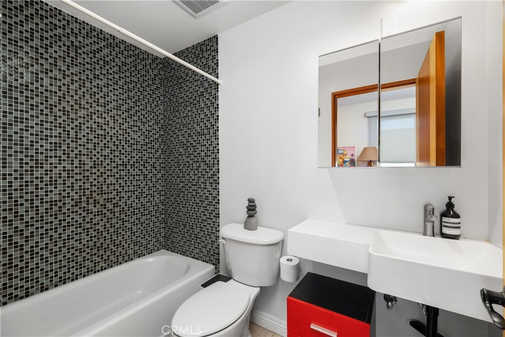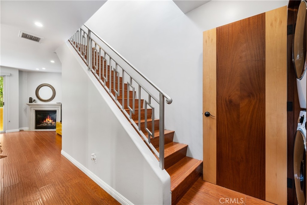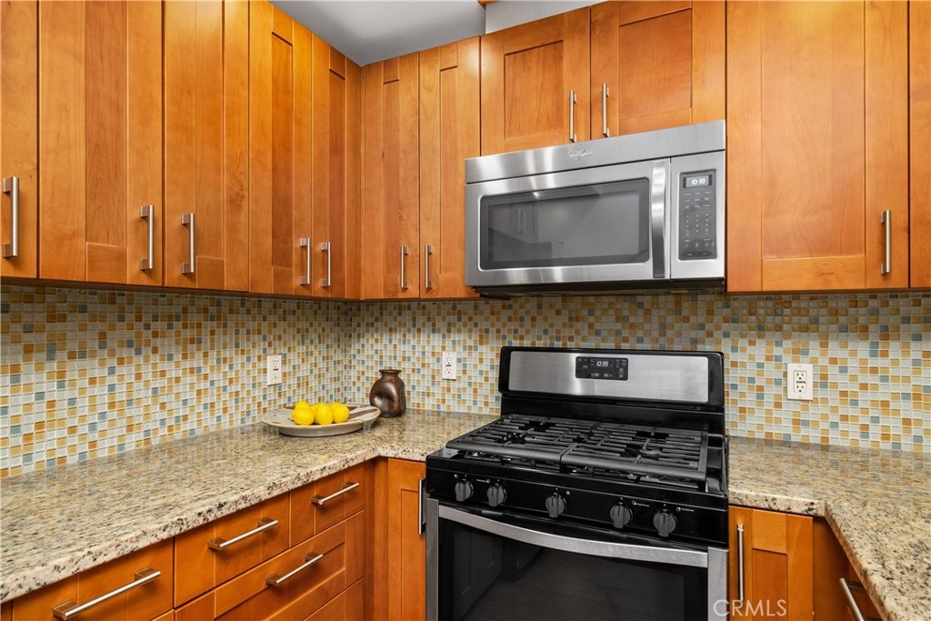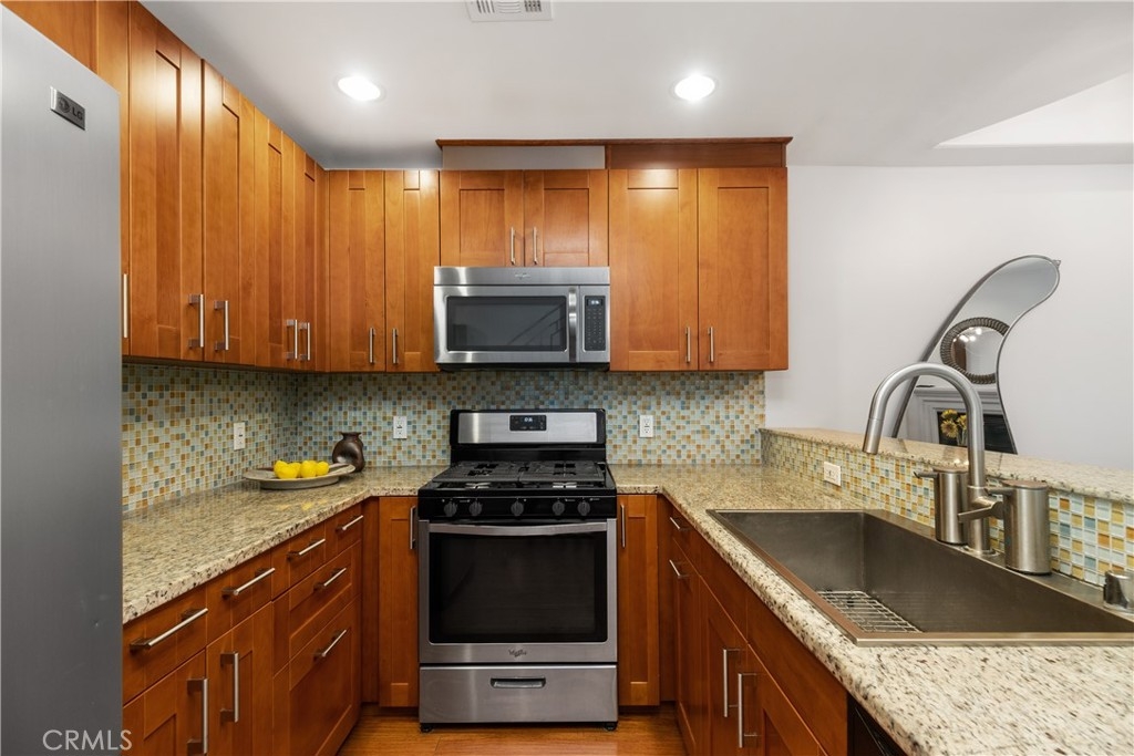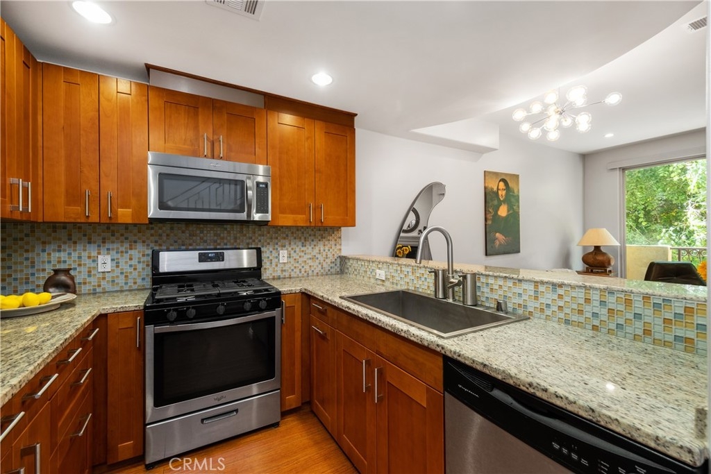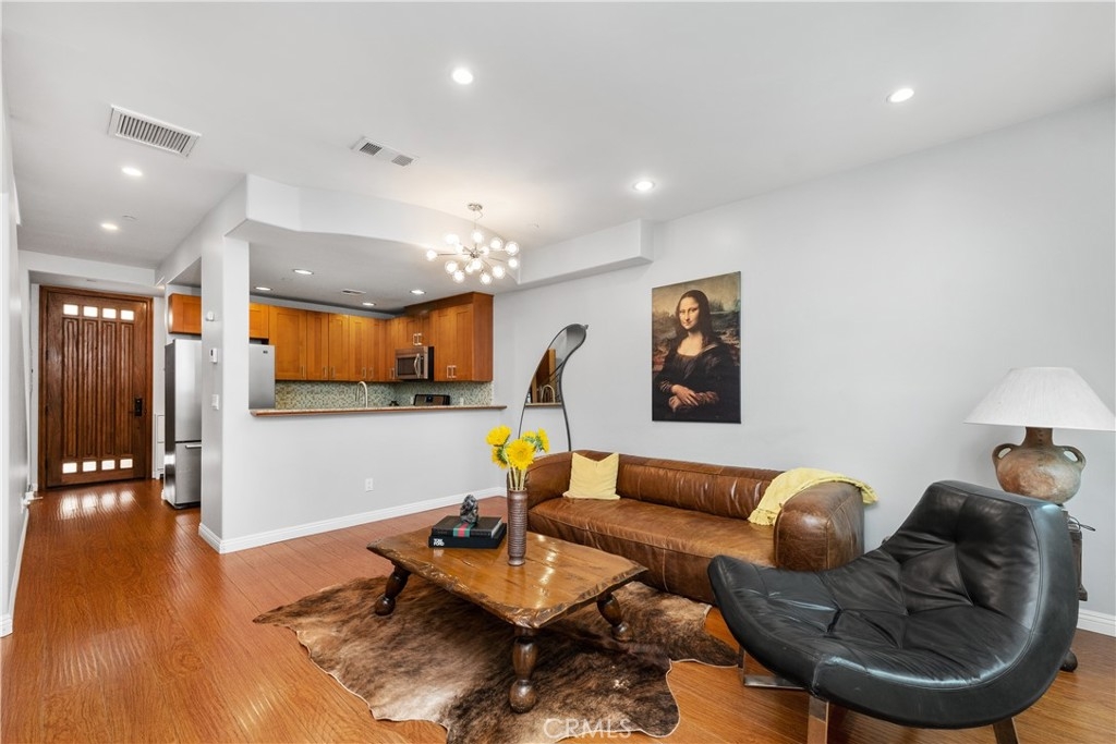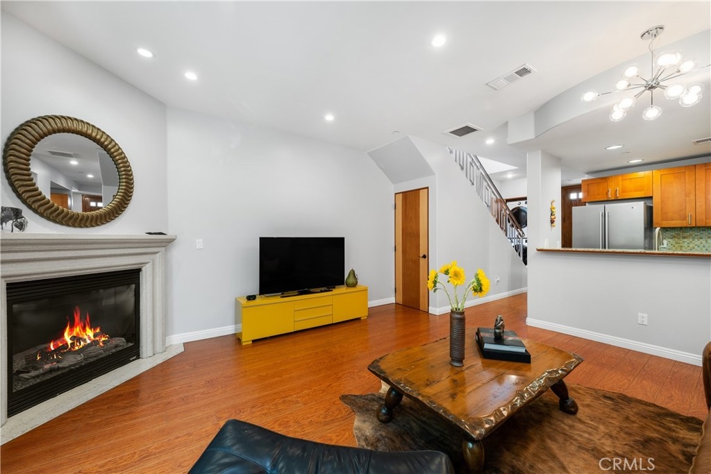 Indulge in the allure of this exquisite Tuscan-style condominium, a hidden gem tucked away in the heart of the vibrant NOHO Arts District. This two-bedroom, two-and-a-half-bathroom residence offers an enchanting living experience in a prime location just blocks away from shops, restaurants, bars, and playhouses. As you enter, be greeted by the elegance of the wood and decorative glass main security door, setting the stage for the refined ambiance within. The gated garage port entry provides both convenience and security, ensuring peace of mind. Spanning two levels, this residence is enhanced by the soft glow of recessed lighting that bathes every inch with warmth and sophistication. Step into the kitchen of this unit to discover stainless-steel appliances, captivating glass-tile backsplashes, sleek modern cabinets, and a breakfast bar seamlessly blending style and functionality. The first level opens to a seamless flow between the dining area and living space, featuring a captivating instant flip-switch gas fireplace/mantel that serves as the centerpiece of comfort. Additional conveniences on this level include a guest bathroom and an in-unit closet for a stacked washer and dryer, combining practicality with luxury. On the second level, two bedrooms await, each boasting its own upgraded full bathroom for a private sanctuary of relaxation. Unwind in these serene spaces, where privacy and comfort harmoniously coexist. This residence also offers the advantage of a 2-car tandem parking space and access to the HOA shared Community Room, an inviting space to connect with neighbors or host gatherings. The nearby Metro Redline Subway Station ensures effortless commuting and easy exploration of the city. Experience the enchantment of Magnolia Park, indulge in the charm of Toluca Lake, and witness the exciting developments of the NOHO West area. Additionally, major studios including Universal, Warner Brothers, Disney, and Dreamworks Studios are just minutes away, offering a world of entertainment. With the 101 and 170 freeways within close proximity, the possibilities of Los Angeles unfold at your doorstep. Embrace the opportunity to live in Tuscan-style luxury amidst the energy of the NOHO Arts District. Schedule a viewing today and unlock the epitome of refined and convenient city living.