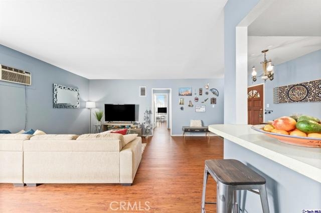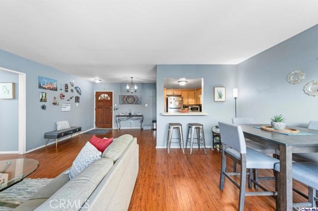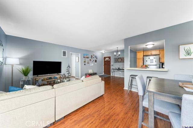 Welcome to this wonderful end unit condo located in the heart of North Hollywood. This one level bright unit has spacious living room 2 good size bedrooms and 2 bathrooms. The kitchen and dining room area are adjacent to the living room with a nice balcony. Centrally located to shops, restaurants and near all the freeways. This ready to move in condo with a low HOA is a great investment.