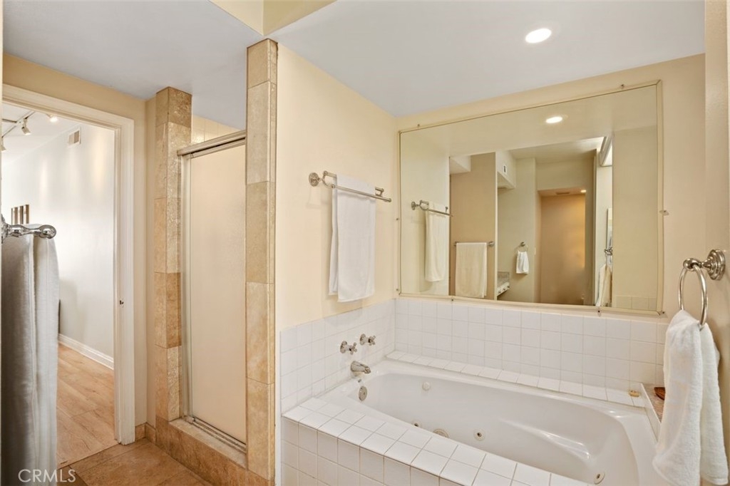 A rare find of a very large 2022 sq.ft single level unit with 2 bedrooms and 2 bathrooms. You are greeted by a double door entry, beautiful flooring and high ceilings throughout with an open floor plan design. The living room has a fireplace, built-in bookshelf, crown moldings & enclosed wet bar. The sliding doors in the living room open to a very large enclosed balcony. Recessed lighting, your own formal dining room, beautiful bright kitchen with plenty of cabinets, pantry & a large breakfast room. The master suite has a huge walk-in closet and the master bathroom has double sinks, spa tub & a makeup vanity area. So much ample closets throughout & its own laundry room in the unit. This 10-unit building has a pool, gym, basketball area and an extra storage area for your other miscellaneous items. 2 car side by side parking. A must see and the best price for all of this!!