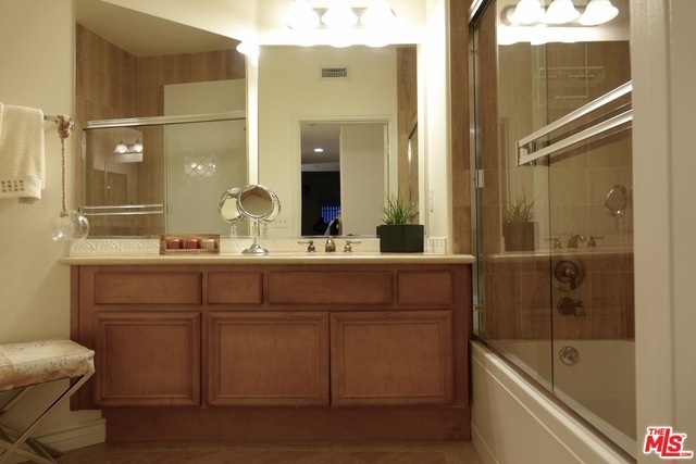 Stunning and luxurious top floor penthouse unit with soaring ceilings featuring 2 bedrooms, 2 ½ baths plus a bonus office/den all on one level facing the common areas with views of the pool, spa, bbq, gardens and mountains. Master suite has a romantic fireplace, walk-in closet and a private full bath with dual sinks and a soaking tub. Gourmet kitchen with stainless steel appliances and granite counters. 2 fireplaces and inside laundry with includedwasher and dryer. 3 separate balconies and many windows make this a bright and tranquil unit. Smart technology including Nest thermostat, CO2 detector and Lutron lighting system. Gated underground parking with 2 assigned spaces and guest parking. Centrally located to the studios, Metro, shopping, freeway access and walking distance to trendy restaurants in Toluca Lake village. Living room surround sound speakers, wall mounted TV and stereo system including some furniture may be purchased separately. MUST SEE!