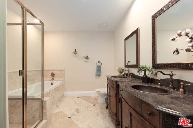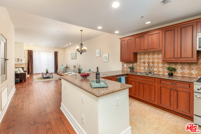 Charming 2 bed, 2 bath condominium in highly desired Toluca Lake! This property boasts an impressive almost 1,400 sq. ft. of living space. Enter the home into a spacious open floor plan. The roomy kitchen has granite counter tops, stainless steel appliances and custom built in pantry. The luxurious dining and living areas feature refinished Oakwood flooring, 8ft glass sliders, and a fireplace providing the perfect ambiance for nights of entertaining or a relaxed night in. The large master bedroom features glass slider to patio, spacious walk-in closet, relaxing and romantic en-suite bath, and builtin cabinets & desk for the in-room work space. Additional bedroom with walk-in closet, separate bath, and in-unit laundry area complete this amazingly cared for home. Other features include recessed lighting, 9ft ceilings, newer HVAC, and new water heater, paint & carpets! Secured property and gated underground parking with 2 tandem spots. Welcome home!!!