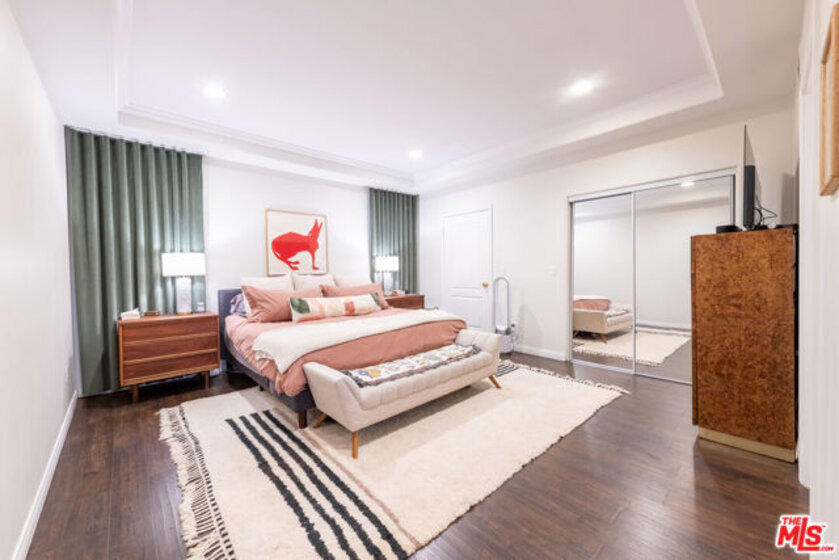 Situated in a quiet, well-maintained community, this Toluca Lake townhouse offers a warm and inviting place to call home in a truly fantastic location. Step through the front door and be greeted by a bright, open, and airy interior filled with natural light. The first level features a spacious primary bedroom with a walk-in closet, additional storage, and an ensuite bathroom with dual vanities and a tub/shower combo. Also on this floor is a generous guest bedroom, easily accommodating a king-size bed, with its own ensuite bathroom; ideal for family or visitors. The main living level opens to a wonderful, expansive living space with soaring ceilings that create a light and breezy feel. Wood floors flow throughout the living and dining areas, which connect seamlessly to the open-plan kitchen. The kitchen is thoughtfully designed with a breakfast bar, ample prep space, and a new range/oven and refrigerator, along with a microwave and dishwasher. The third level offers an additional bathroom with a glass-enclosed shower and a versatile loft space; perfect for a home office, gym, or even a third guest bedroom. Step outside to a sun-filled balcony, ideal for morning coffee, relaxing, or tending to your favorite plants. Additional features include a separate laundry room, central air and heat, and two-car tandem parking in the community garage. Ideally located near Toluca Lake's popular restaurants, shops, and entertainment, with easy access to Warner Bros., Disney, Universal Studios, Tujunga Village, NoHo, and the 101, 134, and 170 freeways, this is a home that truly shouldn't be missed!
