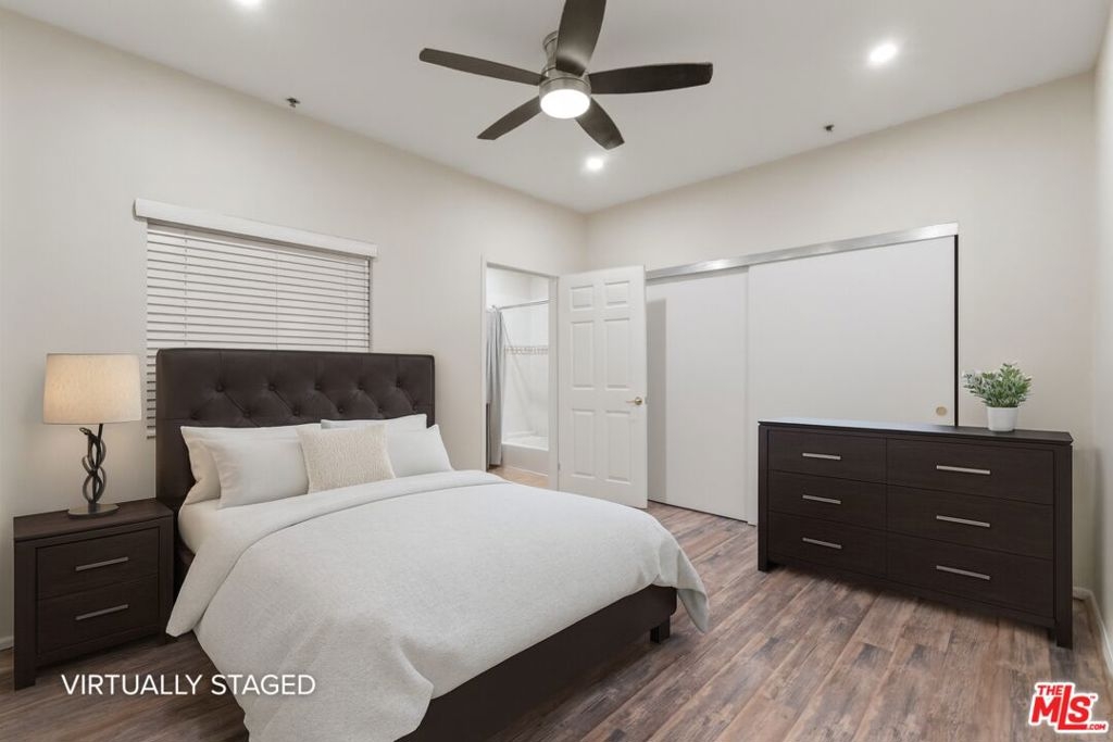 Incredible value for this city Condo. Discover the allure of contemporary living in the vibrant NOHO Arts District of North Hollywood! This stunning condo offers 3 bedrooms and 3 bathrooms within an expansive 1,300 square feet of well-designed living space. Step into the inviting living area, adorned with rustic wood laminate flooring and sleek white walls, which seamlessly connect each room. Enjoy city views from your private patio, perfect for relaxation. The spacious kitchen is a chef's dream, featuring granite countertops, stainless steel appliances, and ample storage, along with a convenient stackable washer/dryer nook. Each bedroom is generously sized, offering large sliding door closets, ceiling fans, and abundant natural light. The master suite boasts an ensuite bathroom with matching granite accents and an additional patio, an ideal spot for morning coffee. Residents benefit from building amenities, including a rec room, gym, and gated garage parking. With easy access to the 101 and 134 freeways, trendy restaurants, and the new NOHO West, this condo is a true gem in the NOHO Arts District. Don't miss your chance to make it yours!
