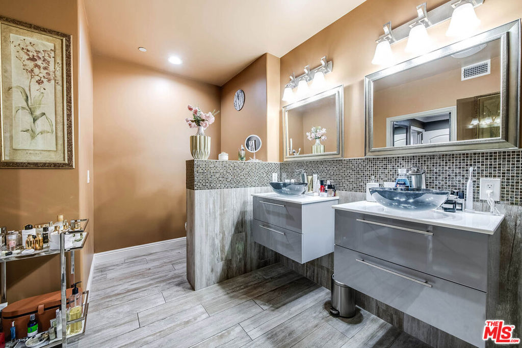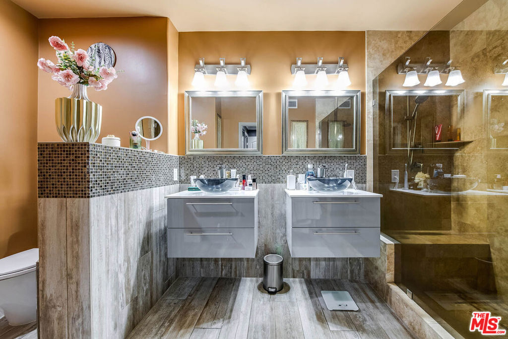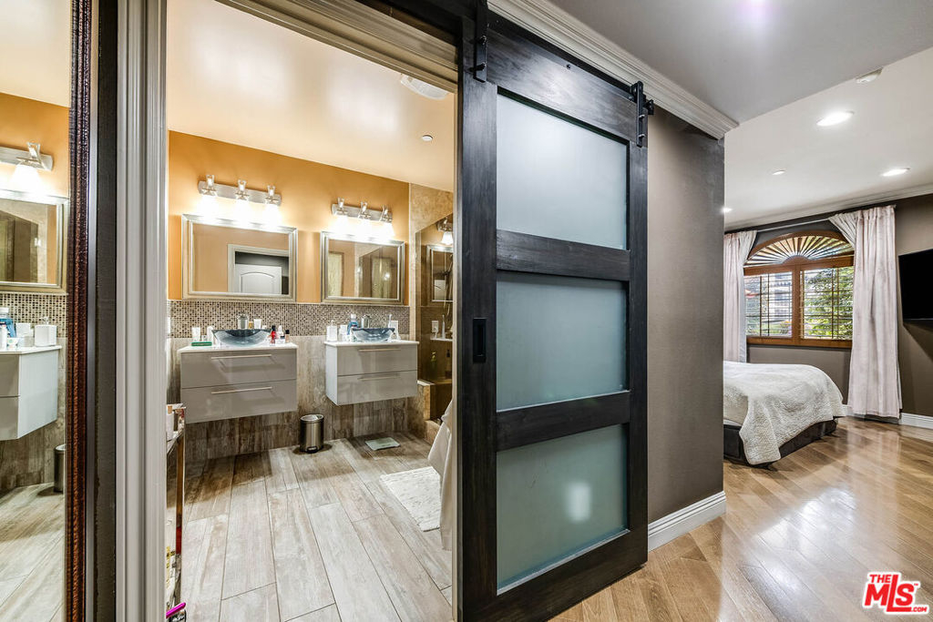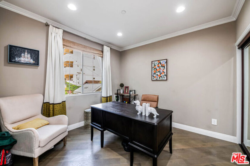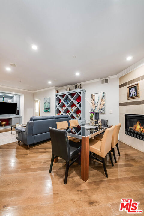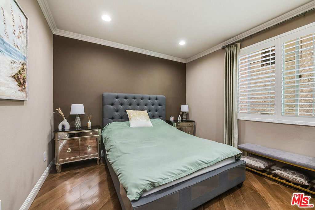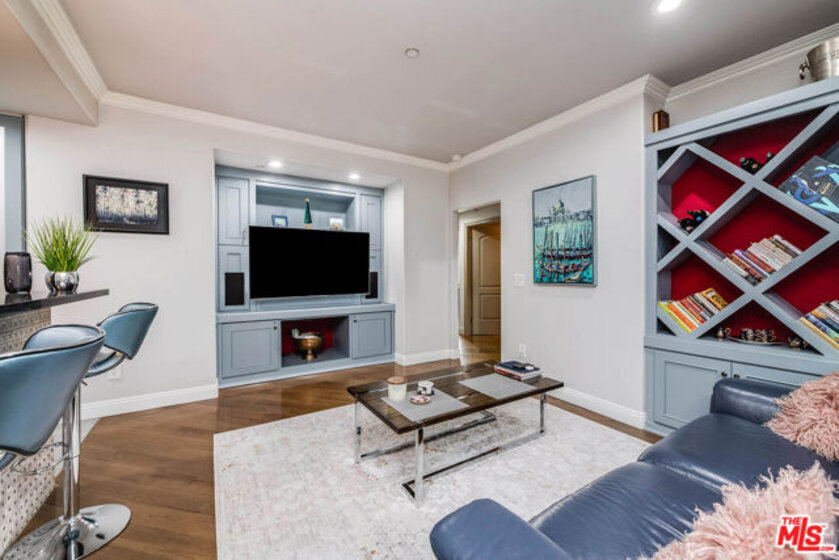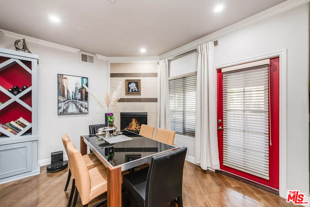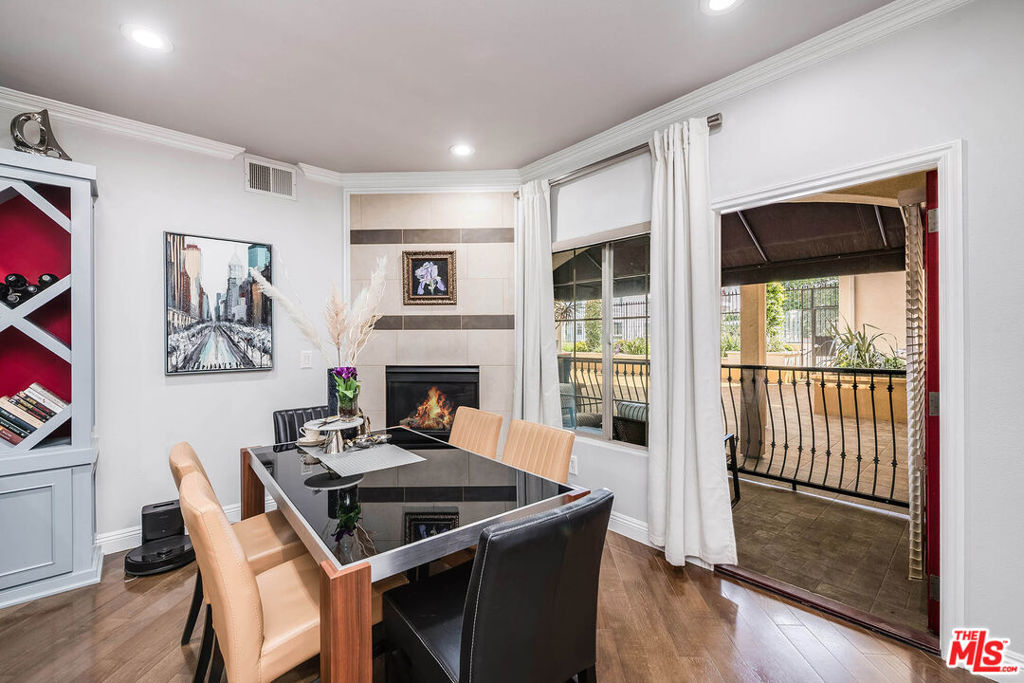 Welcome to 4805 Bellflower Ave #104, a beautifully upgraded 3-bedroom, 2.5-bath condo offering the perfect blend of style, comfort, and convenience in the heart of North Hollywood. This thoughtfully designed home features an open-concept layout with a seamless flow between the kitchen, dining, and living areasideal for both everyday living and entertaining. The chef's kitchen showcases custom cabinetry, granite countertops, a spacious pantry, stainless steel appliances, a built-in wine cooler, and a breakfast bar overlooking the living room. The inviting living space is highlighted by rich hardwood flooring, recessed lighting, and a stunning fireplace, with large sliding doors leading to a private patio overlooking a serene courtyard. The spacious primary suite offers a peaceful retreat with ample closet space and a beautifully updated en-suite bathroom featuring dual vanities and a large walk-in shower, while two additional bedrooms provide flexibility for guests, office space, or family needs. Additional features include a stylish powder room, in-unit laundry, and high-end finishes throughout. Located in the desirable "Arte Toluca" community, residents enjoy amenities such as a modern screening room with theater seating and wet bar, tranquil courtyard with fountain, and secured side-by-side parking. Ideally situated near the vibrant NOHO Arts District with its popular restaurants, studios, shopping, and convenient transportation options, this move-in-ready home offers the best of luxury and location.