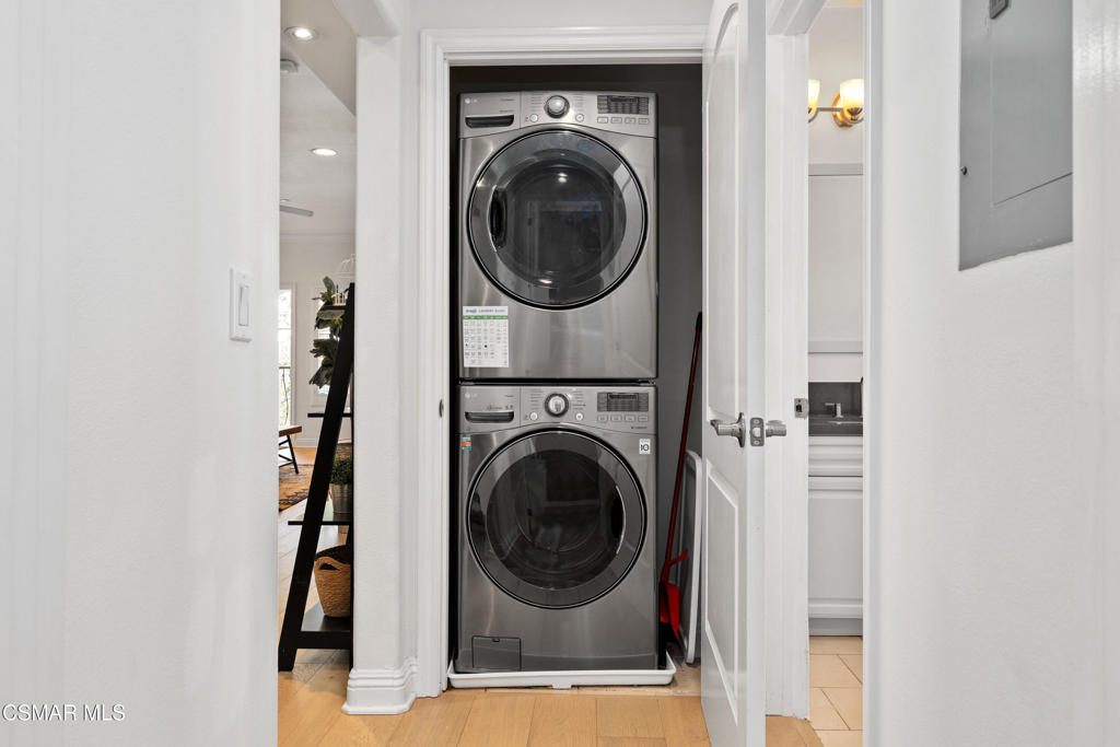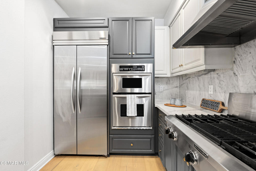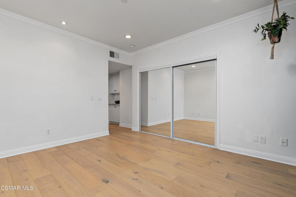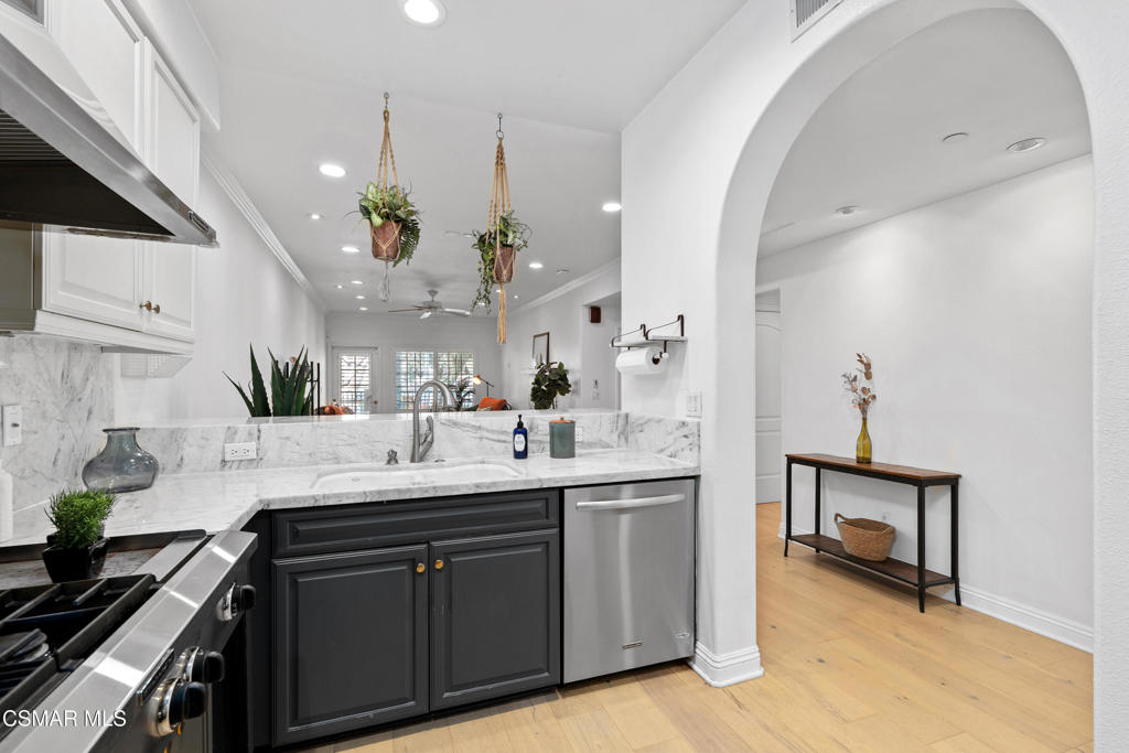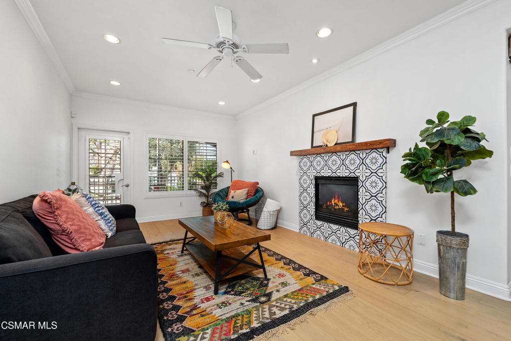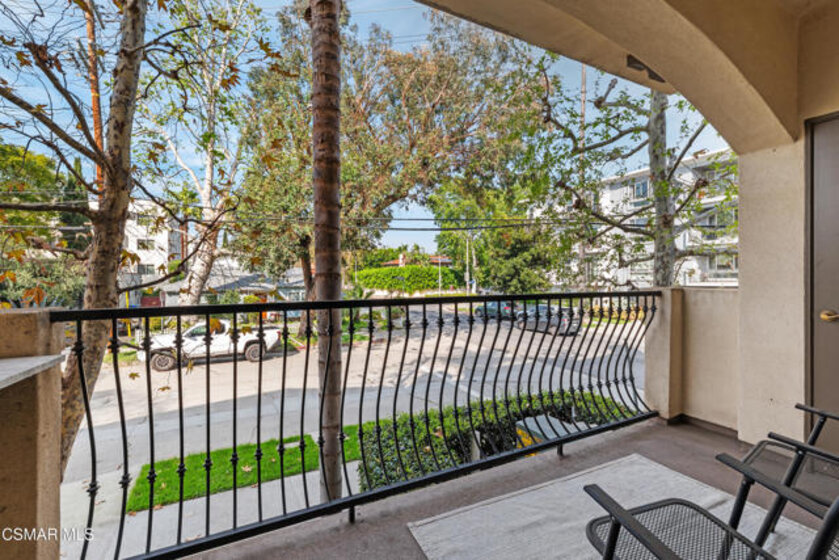 Welcome to this beautifully remodeled end-unit condo in the highly desirable NoHo Arts District. Enter through the oversized front door into a bright, open-concept living space. The spacious living and dining area features high ceilings and abundant natural light, while a decorative fireplace with a custom mantle creates a warm and inviting atmosphere. Through an elegant archway, the upgraded chef's kitchen showcases custom cabinetry, Quartz countertops, stainless steel appliances, a beverage fridge, and an impressive range with built-in griddle and grill--perfect for cooking and entertaining.The generously sized secondary bedroom includes custom closet cabinetry for optimal storage. The upgraded hall bathroom features new sink and lighting fixtures along with a large tub and shower with a brand-new shower head. The spacious primary suite, located toward the back of the home for added privacy, offers built-in closet cabinetry and a large en-suite bathroom with dual sinks and a luxurious spa-like walk-in shower. Step outside to your private balcony surrounded by mature landscaping, creating a peaceful retreat ideal for relaxing or enjoying your morning coffee. Additional features include luxury wide-plank vinyl flooring throughout, recessed and dimmable lighting, in-unit laundry, a Ring doorbell system, Nest thermostat, tankless water heater, and secure code-gated entry for added peace of mind. The building is beautifully maintained, with the roof completed just a few years ago and serene common areas throughout. This unit includes two parking spaces and is conveniently located near some of the best shopping, dining, gyms, and grocery stores Los Angeles has to offer, with easy access to everything the vibrant NoHo Arts District provides.