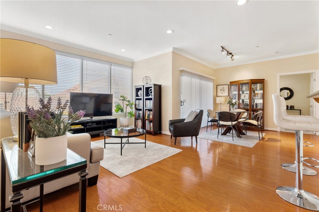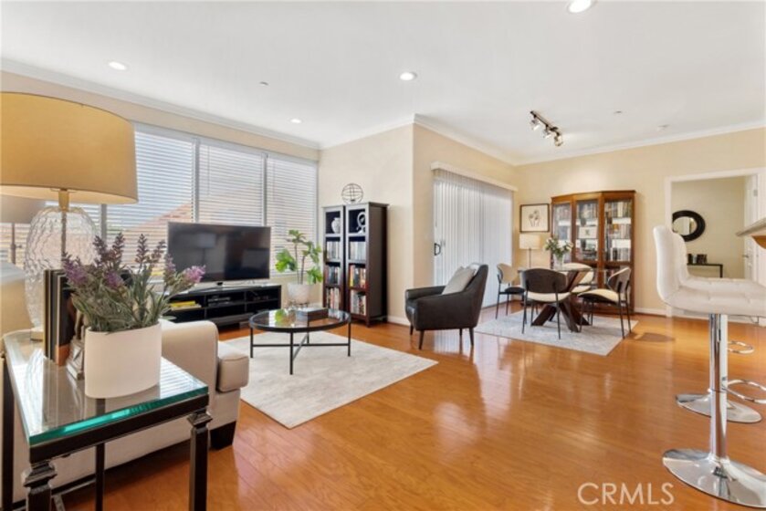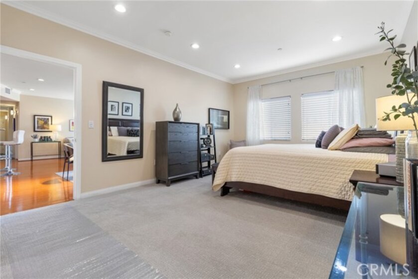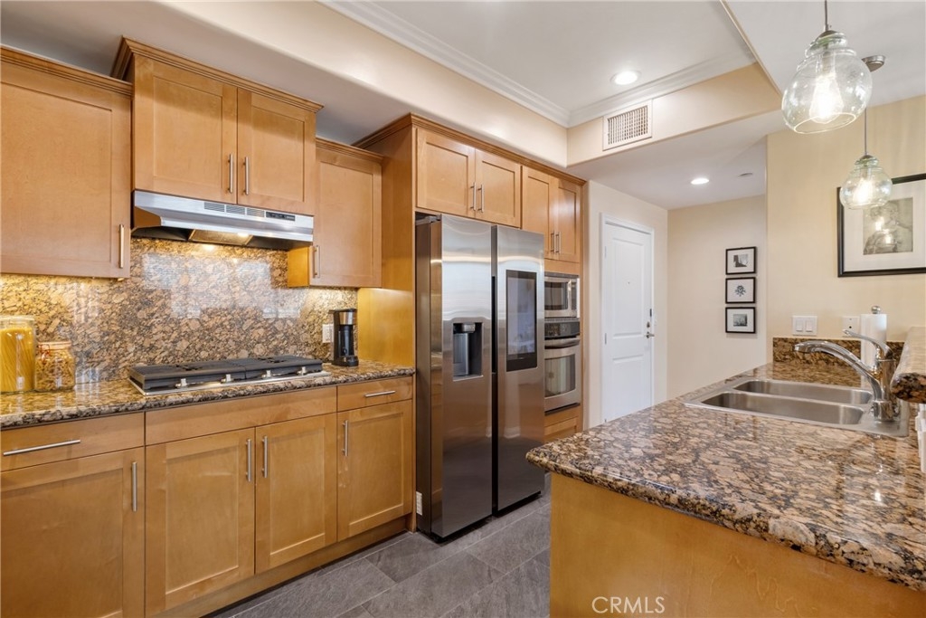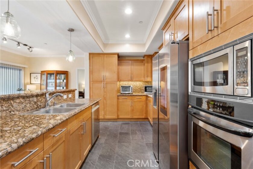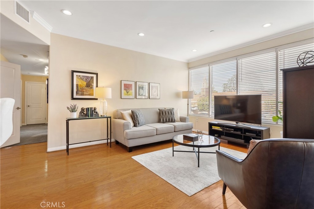 If sophisticated luxury is what you're seeking, you've found your next home! This three bedroom, two and a half bath end unit offers elegant refinement and the space to spread out and relax with ten-foot ceilings and trimmed with crown molding. Just minutes from the NoHo Arts District, NoHo West, Studio City and the Burbank studios you'll be close to great dining and shopping, with a Starbucks right next door for easy access to your favorite coffee fix! You'll find a gourmet kitchen with lots of counter space, built-in microwave and oven and a super high-tech refrigerator with wifi so you can view the contents from the exterior screen, saving you money by not having to continually opening its door. This ideal layout provides the bedrooms at opposite ends of the unit. The spacious primary suite offers a generous walk-in closet, a great ensuite bathroom with a deep soaking tub. This unit also comes complete with a stackable washer/dryer, dimmable lighting throughout, newly replaced hot water heater, Hardwood flooring in the living and dining rooms, nice views from the private balcony and a very rare sizable storage room to boot! The building offers a large gym, a community area with a pool table and table tennis and two-car parking secured below with ample guest parking, but on street level for easy and quick access. Make this your last stop, as once you view this unit, you're going to make this your next home!