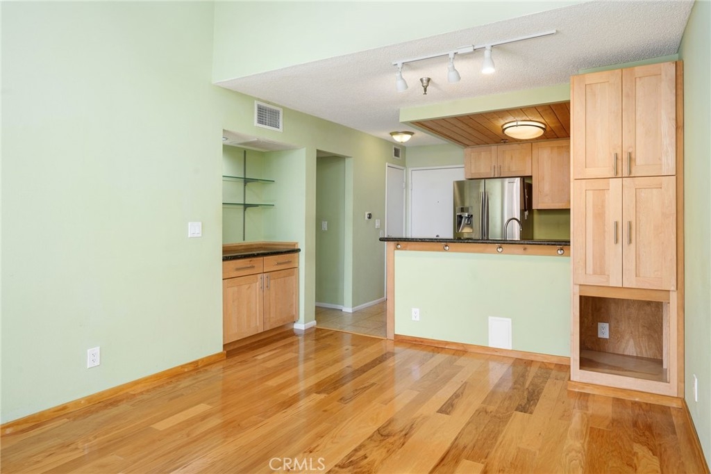 Welcome to this fantastic TOP FLOOR condo in the desirable NOHO Arts District! This 1 bed/1 bath unit offers the perfect open layout filled with natural light. It features a spacious living room with beautiful hickory floors, high ceilings, a gas fireplace to relax at the end of the day and a great balcony to enjoy the LA weather. A very nice kitchen with appealing maple cabinets, granite countertops and pine wood ceilings. Large bedroom and walk-in closet. Central heat and AC. This unit comes with 2 assigned tandem parking spaces. This amazing secured gated community includes an intercom system, exercise room, laundry room, recreation room, community pool, upgraded BBQ, outdoor lounge seating areas and EV charging stations. It is conveniently located near great shopping, dining, outdoor recreation, the 170, 101 & 134 freeways and the North Hollywood Metro Station.