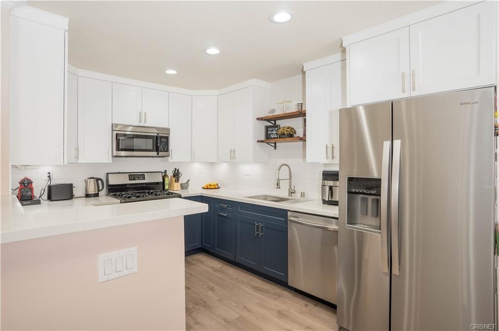LOCATION!!! Luxury condominiums, completely remodeled condo is located in the NoHo Arts District neighborhood of Toluca Woods. Brand new high end kitchen features stainless steel appliances, refrigerator, stove, dishwasher, microwave with quartz counter tops. Custom made cabinetry. New floors throughout the house. Tile floor in the bathroom. Central heating and air conditioning. Gated 2 parking per unit. FREE and CLEAN Community laundry! LOW HOA, Open court sun deck and more!! Close to restaurants, bars, shops and more. this one won't last!