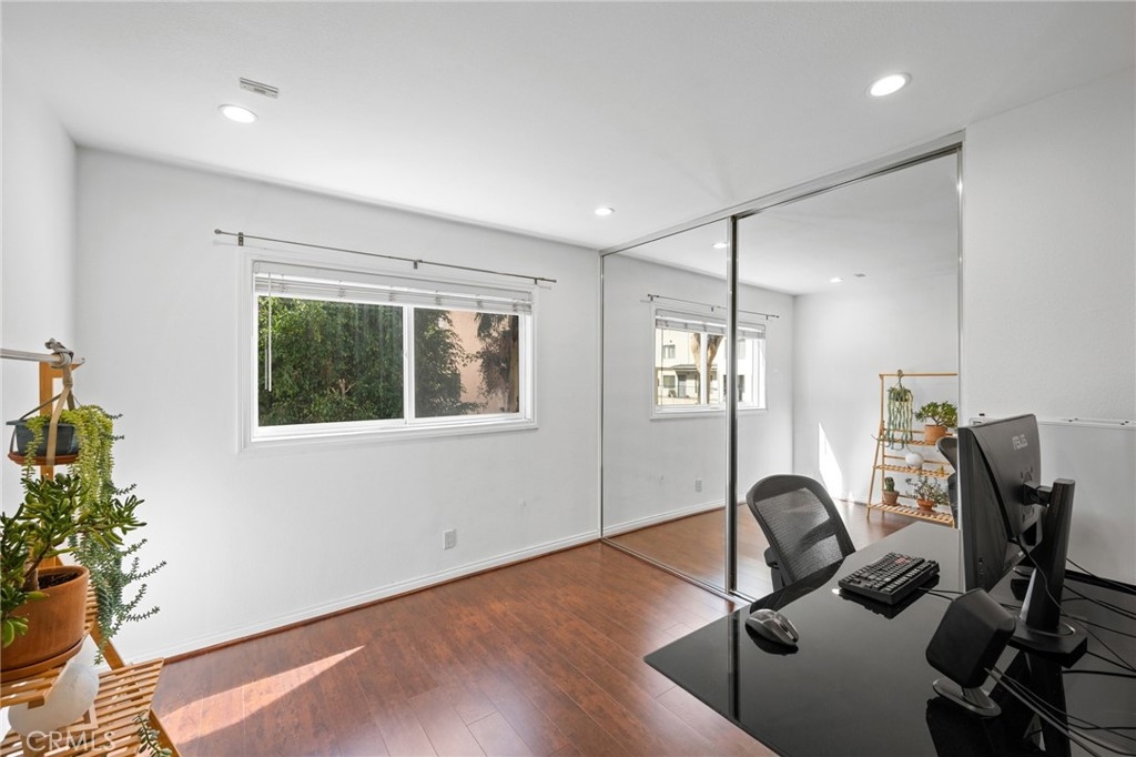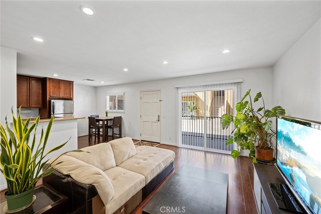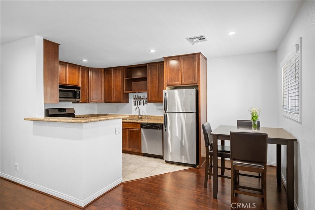 Welcome to this charming 2-bedroom condo located in the heart of NoHo Arts District. This delightful unit is situated in a quaint courtyard-style building with a secure, gated underground garage for your peace of mind and privacy. Upon entry, you'll be captivated by the laminate wood floors, which add a touch of elegance to the entire space. The living room features large sliding doors that provide a serene courtyard view, filling the room with natural light. The many windows in the unit ensure the living, dining, and kitchen areas are bathed in refreshing sunlight. Modern comfort is at your fingertips with central heating and air conditioning, controllable through a Nest thermostat accessible via your phone. The well-equipped kitchen boasts a breakfast bar and stainless steel appliances, including a gas oven/stove, refrigerator, dishwasher, and built-in microwave. Two nice size bedrooms offer ample closet space for your storage needs. The full bathroom has convenient access from both the larger bedroom and the hallway, enhancing its practicality and functionality. The complex is well maintained, featuring a spacious open courtyard and newer dual-pane windows in all units. Additionally, residents benefit from FREE laundry facilities with five washers and dryers, making daily life more convenient. Pet owners will appreciate the on-site dog run for their furry companions. With the added convenience of two-car tandem parking and low HOA fees, this condo is an excellent choice for owner-users or investors. Don't miss this opportunity to own a gem in the NoHo Arts District, with easy access to cafes, restaurants, theaters, art galleries, and the Metro Red Line for a straightforward commute to DTLA!