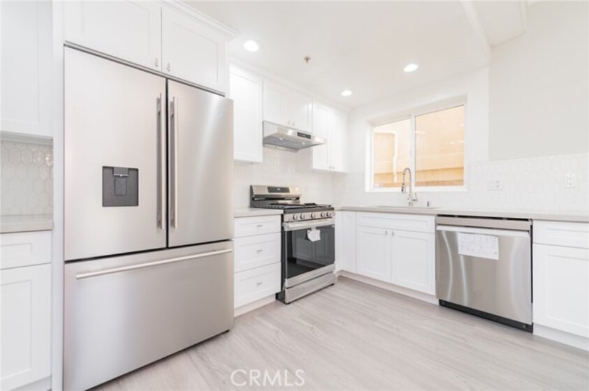 Gorgeous Tri-Level end unit town home. located in the desirable North Hollywood district with gated community. Built in 2006. 3 bedrooms and 2.5 bathrooms. Brand new laminate wood floors and new paint. Private roof top deck and patios. Crown molding, recessed lighting, central air/heat. Fireplace in the living room. The Brand New remodeled kitchen is equipped with new beautiful granite counters, kitchen island, New stainless steel appliances . Master suite with approximately 20-foot ceiling with Brand new shower.. washer and dryer hookups. Private 2 car garage with direct access. Near metro station, NoHo arts district, restaurants, theaters, shops and major studios and Universal City Walk. Easy access to the 101, 134 and 170 freeways. Do not miss this opportunity! Move in Ready!! *****No More Rent !!! Don’t Wait !!! “5.5% 30 years fixed interest rate UNBELIVABLE”.***** Yes, seller is willing to help with $20K toward the closing cost. Buyer can use $12500 to buy down the interest rate to 5.5%, and the remaining $7500 toward the escrow cost. Come to see details. Considering the saving on mortgage with lower interest rates and mortgage itself is close to the rent paid in NOHO area.