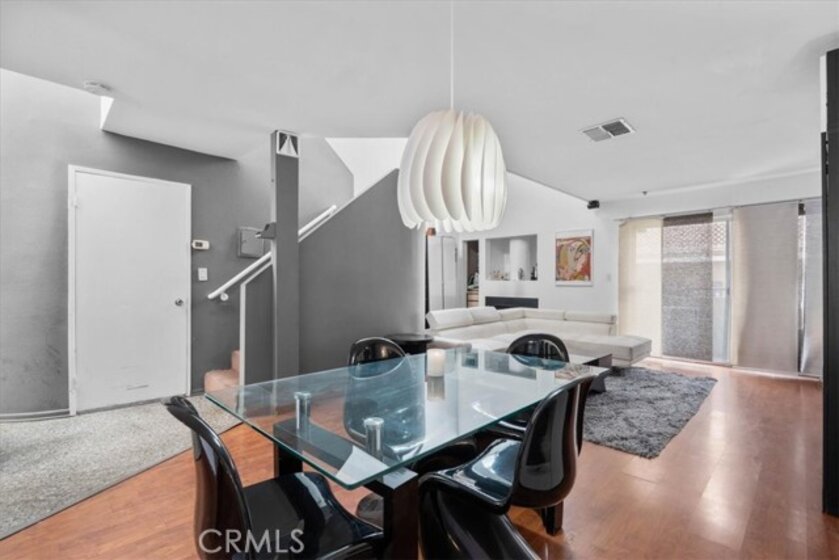 Welcome to this bright and modern 2-bed, 2-bath condo nestled in the desirable North Hollywood community. Boasting soaring ceilings and an open-concept design, this spacious residence offers a seamless blend of contemporary style and everyday comfort. This is a opportunity in the building, with the last two comparable units selling for $587K and $600K, highlighting the strong value and demand within the community. Step inside to an inviting living area filled with natural light that highlights the rich wood-style flooring and stylish finishes throughout. The living room features dramatic volume ceilings, an architectural focal wall, and direct access to outdoor space — perfect for relaxing or entertaining guests. Adjacent is a sleek dining area with designer lighting and room for a full-sized table. The kitchen presents clean lines, ample cabinetry, and plenty of countertop space, while the thoughtful layout flows effortlessly into the living and dining zones. The generous primary suite includes an ensuite bath, excellent closet space, and privacy from the main living areas. A second full bathroom serves guests and adds convenience. Additional features include in-unit laundry, designated parking, and plenty of storage. Ideally situated near dining, shops, Metro transit, and all that the NoHo Arts District has to offer — this condo is a rare opportunity in a vibrant, walkable neighborhood. Don’t miss your chance to own contemporary urban living in one of North Hollywood’s most sought-after locations!