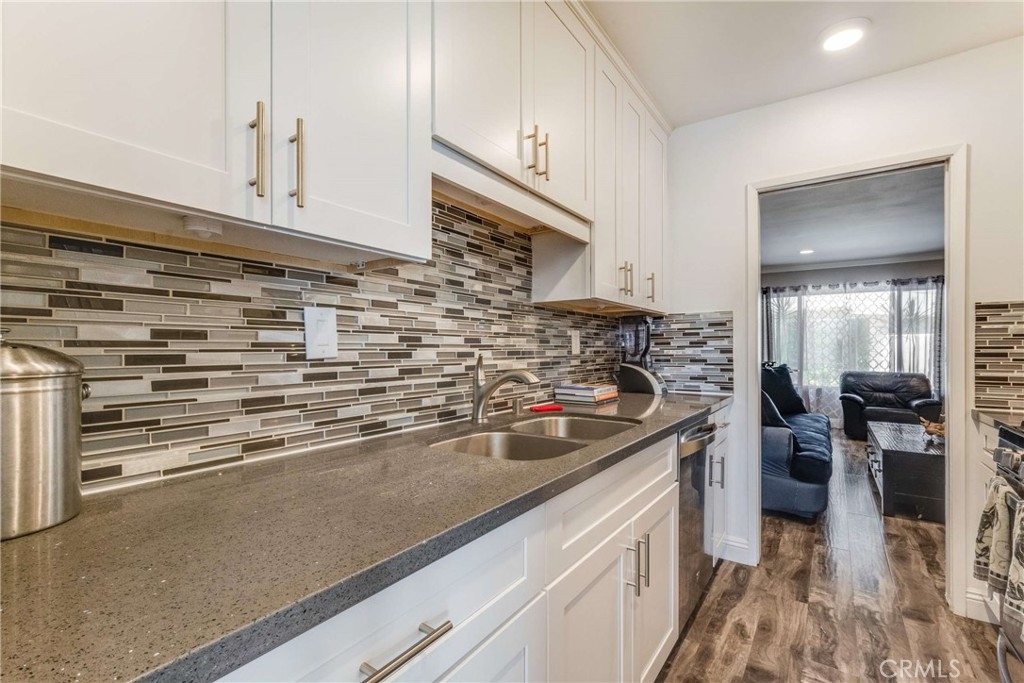 Adorable 3 bedroom + 2 bath townhome in convenient location! Recently renovated, this tidy townhome features granite counters and wood floors throughout. There is a living room, kitchen, ¾ bath and a bedroom on the ground floor, and 2 bedrooms and a full bath on the top. 3rd bedroom is currently used as a dining room, and could make a great home office or family room. Stacked laundry in unit. Includes private patio area and 2 parking spaces—not tandem! The unit is located towards the rear of the complex, in a secluded section by one of the association’s 3 pools. HOA includes child’s play area as well!