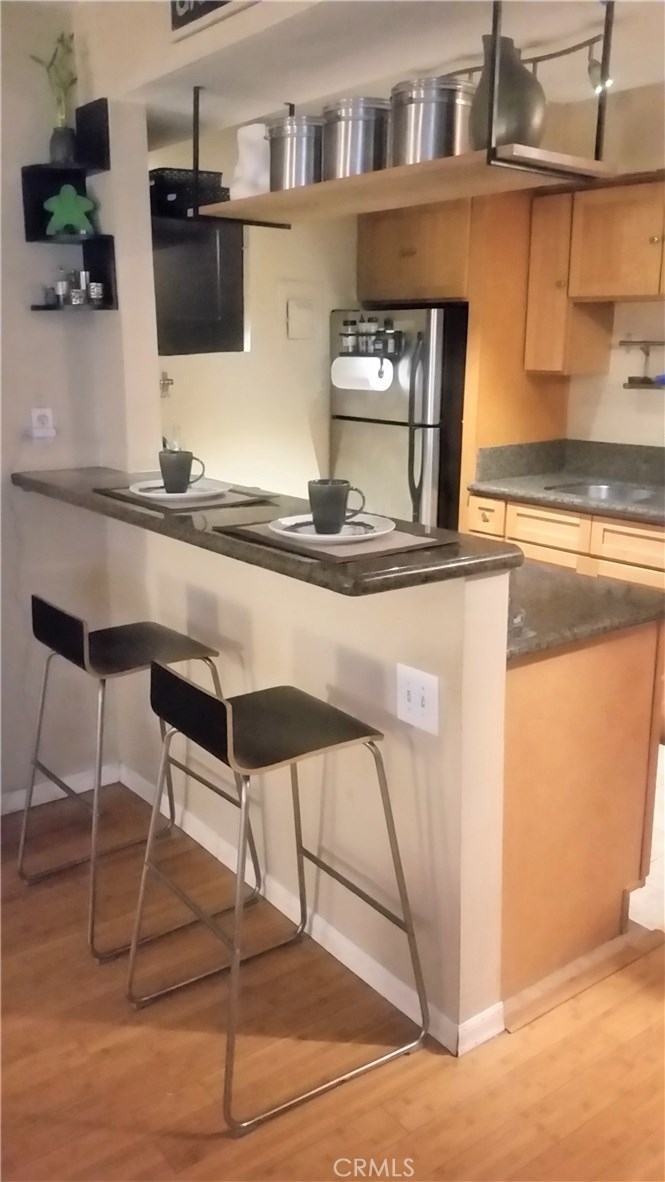 Desirable LOWER LEVEL 2+2 Condo in heart of North Hollywood! OPEN and free flowing floor plan. REMODELED KITCHEN and BATHROOMS! STAINLESS STEEL APPLIANCES ALL INCLUDED: range, dishwasher, microwave and REFRIGERATOR! Custom kitchen cabinets and granite counter tops. Wood floors and security shutters. Amenities include three swimming pools, recreation room and playground. HOA dues also includes trash service, water, security guard who walks premises every night and basic cable with Direct TV! Walking distance to: Starbucks, CVS, Vallarta supermarket, LA Fitness, Chipotle, Blaze Pizza and a Cinemark movie theater. Included 1-car carport parking outside the building. Two additional parking spaces can be rented from the HOA. Pet friendly complex too.